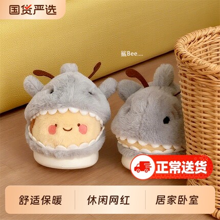 细细条鲨bee居家可爱毛毛鞋男女冬保暖情侣棉拖鞋蜜蜂半包全包