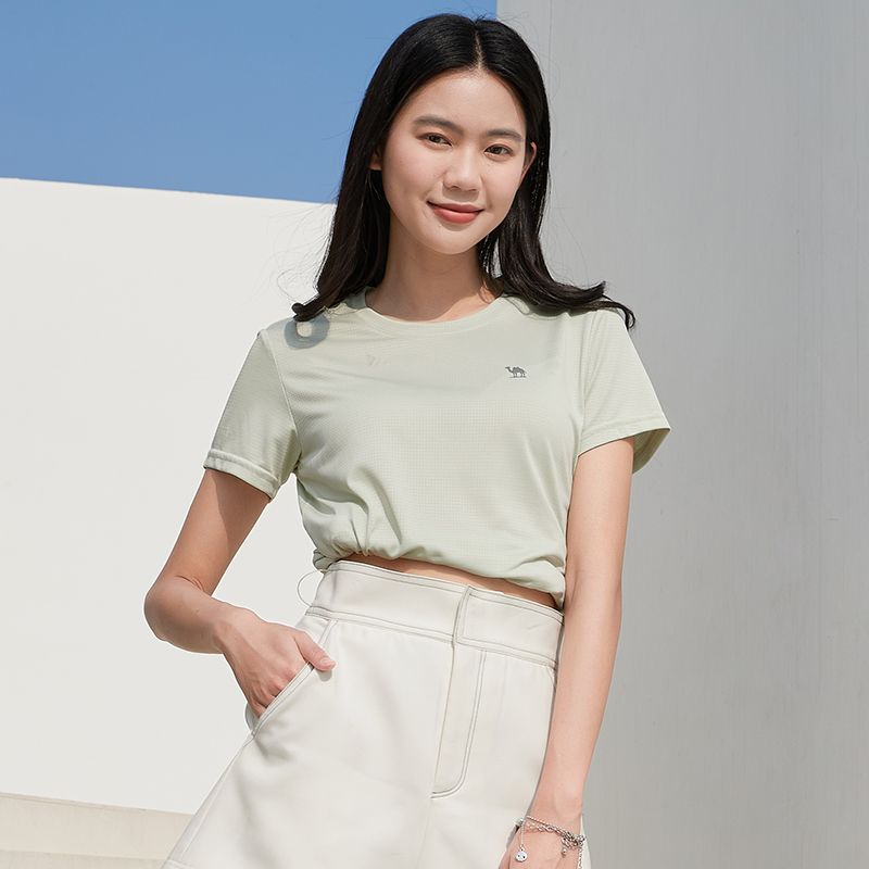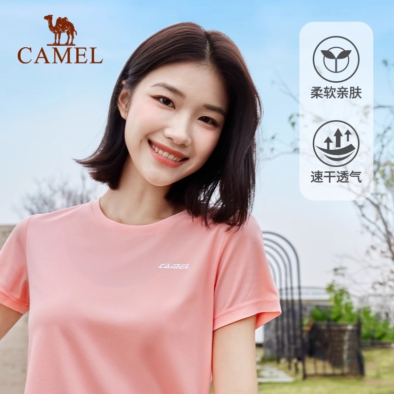 骆驼女装速干T恤女防晒春夏新款圆领短袖宽松吸汗透气休闲上衣男