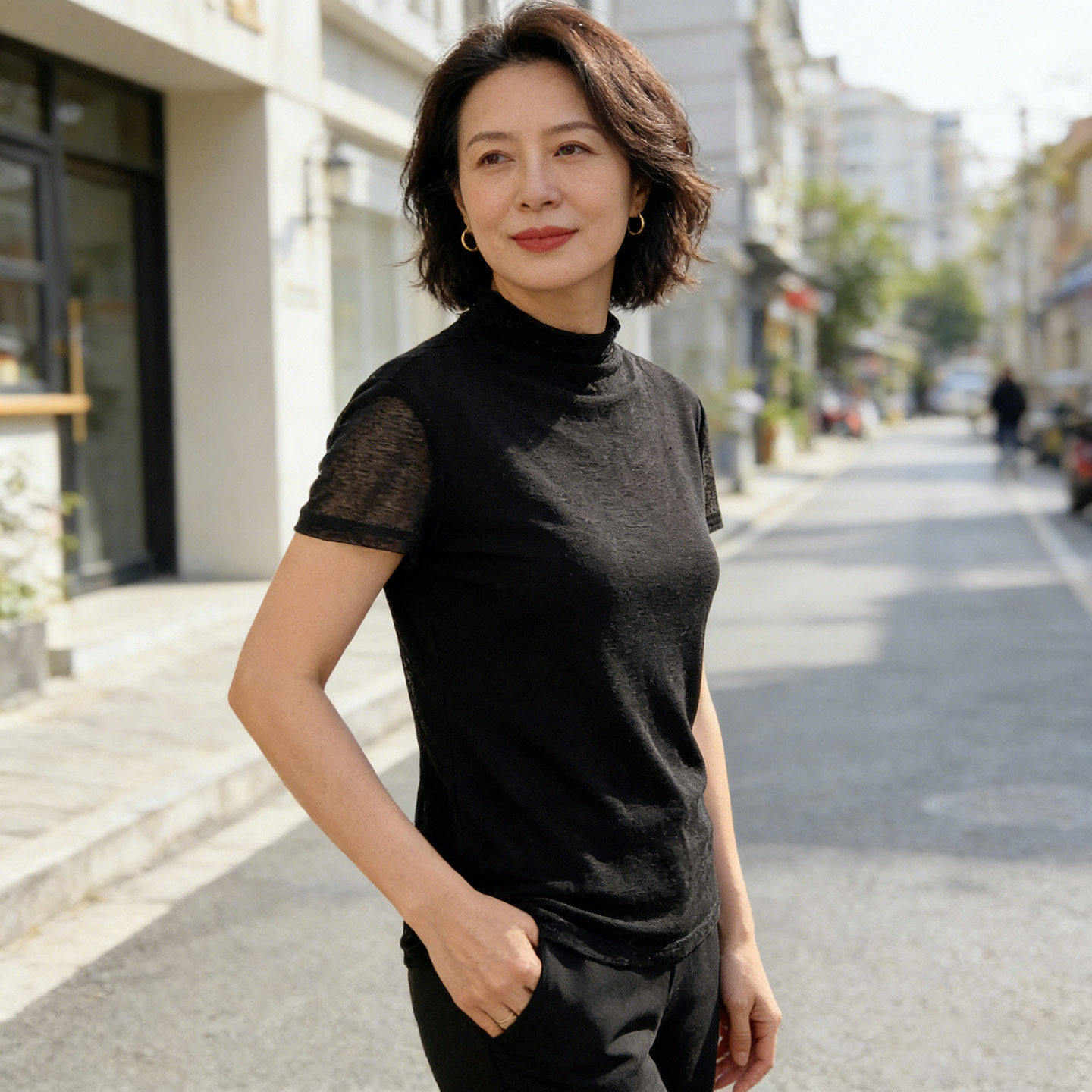 真丝小立领t恤衫网眼网纱短袖T恤桑蚕丝妈妈装夏季款显瘦上衣女