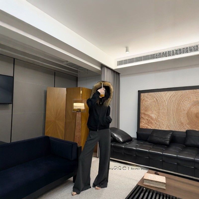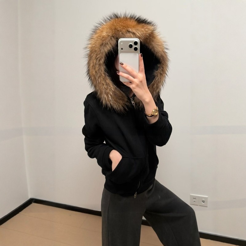 R13真貉子毛领加绒连帽卫衣女2025冬季爆款加厚保暖百搭拉链外套