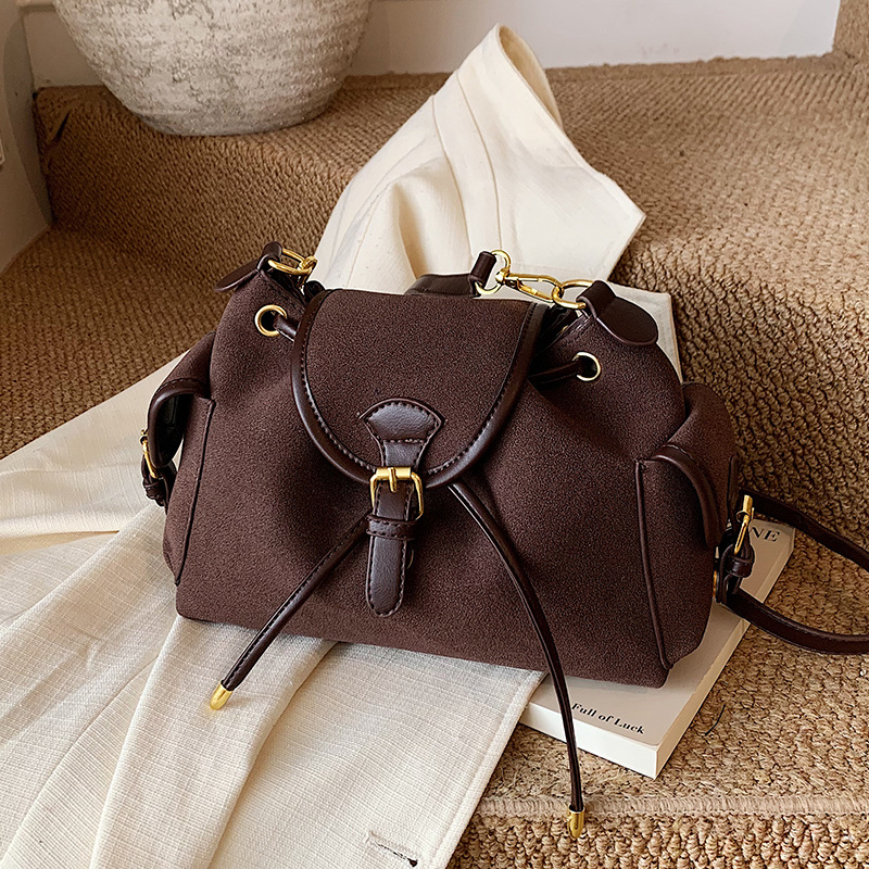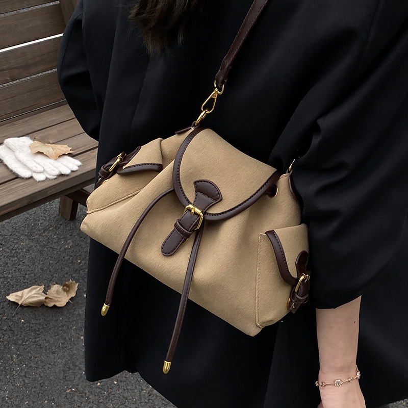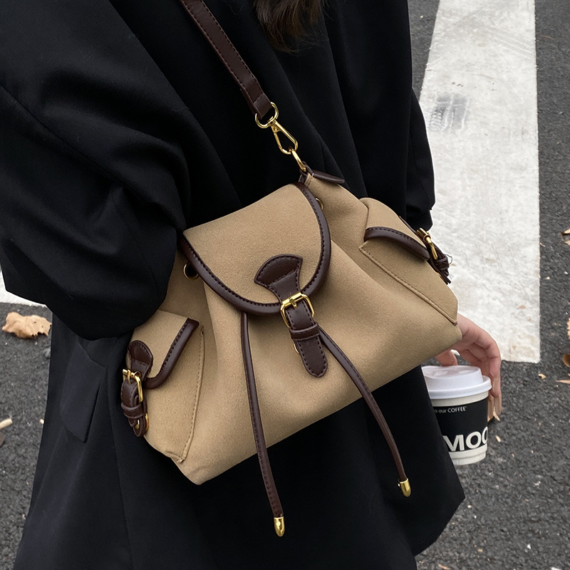 时尚通勤复古磨砂包包女2025新款休闲百搭斜挎包美拉德棕色单肩包