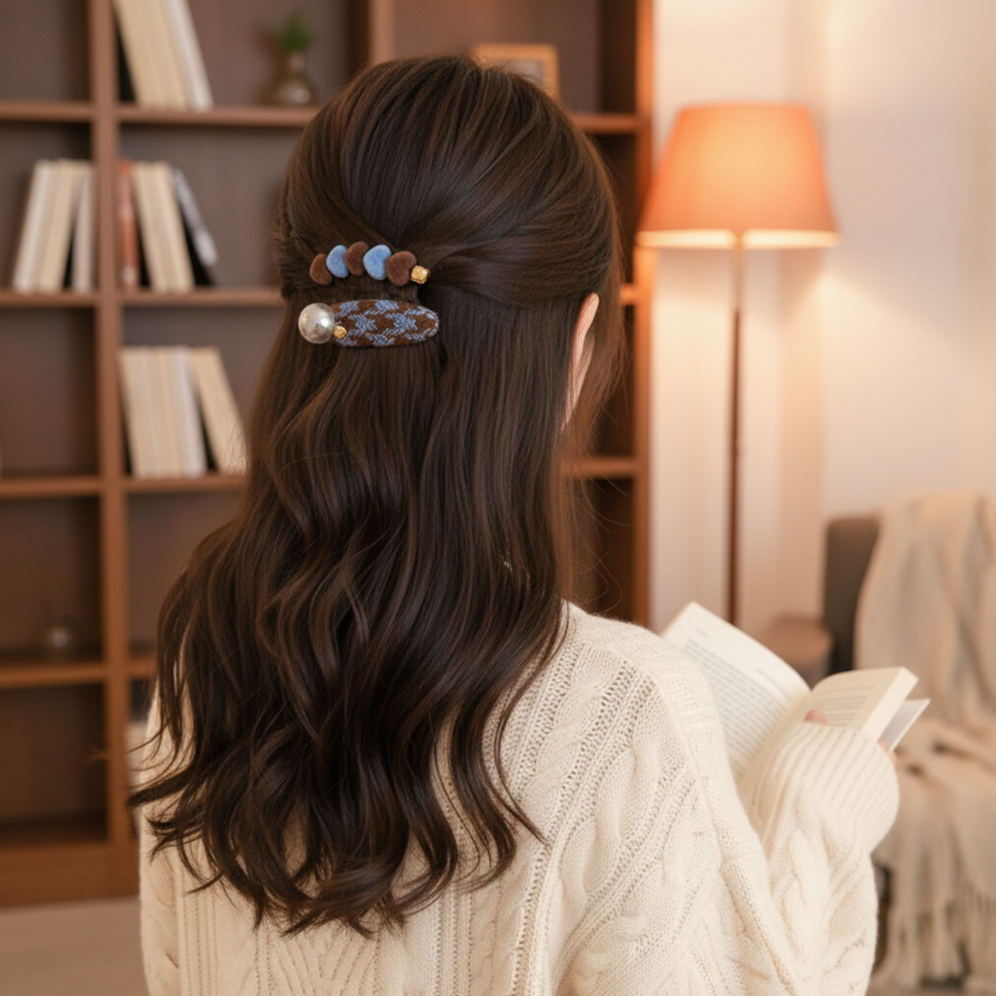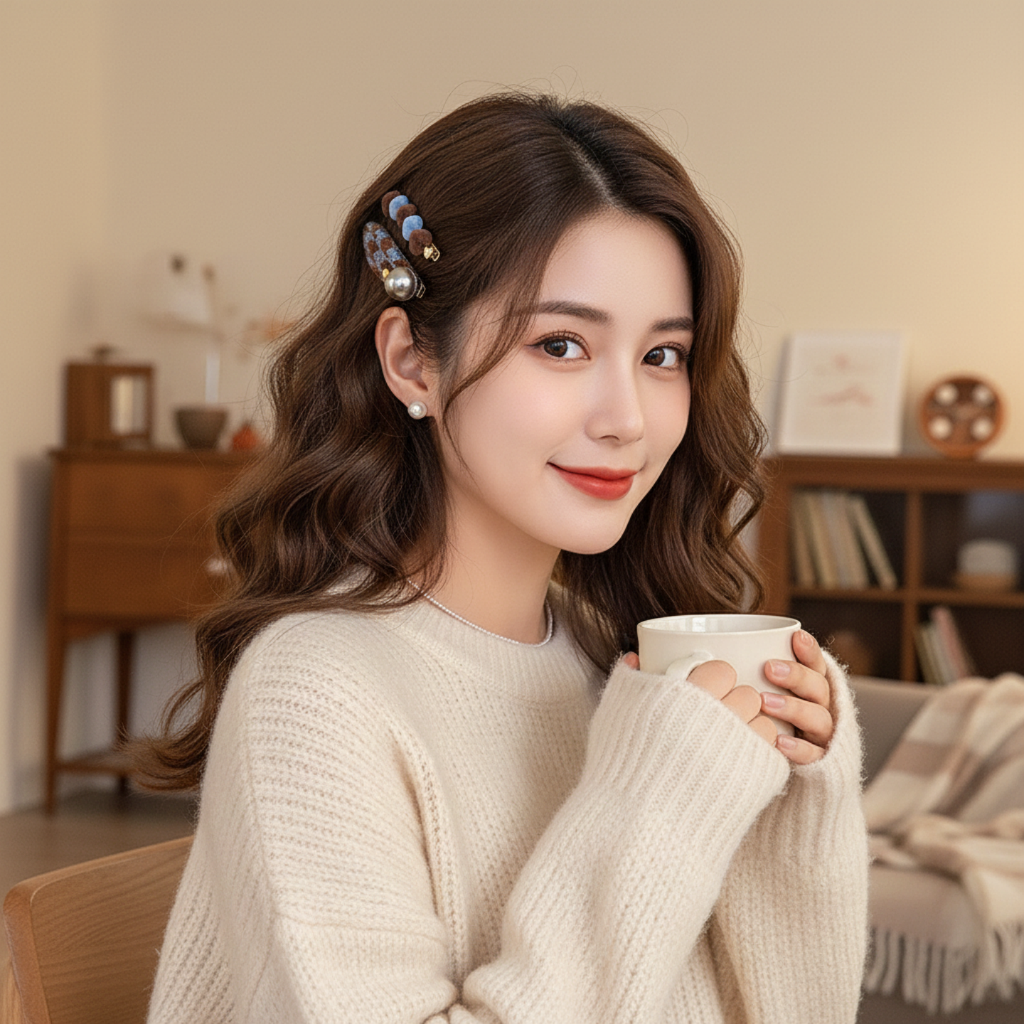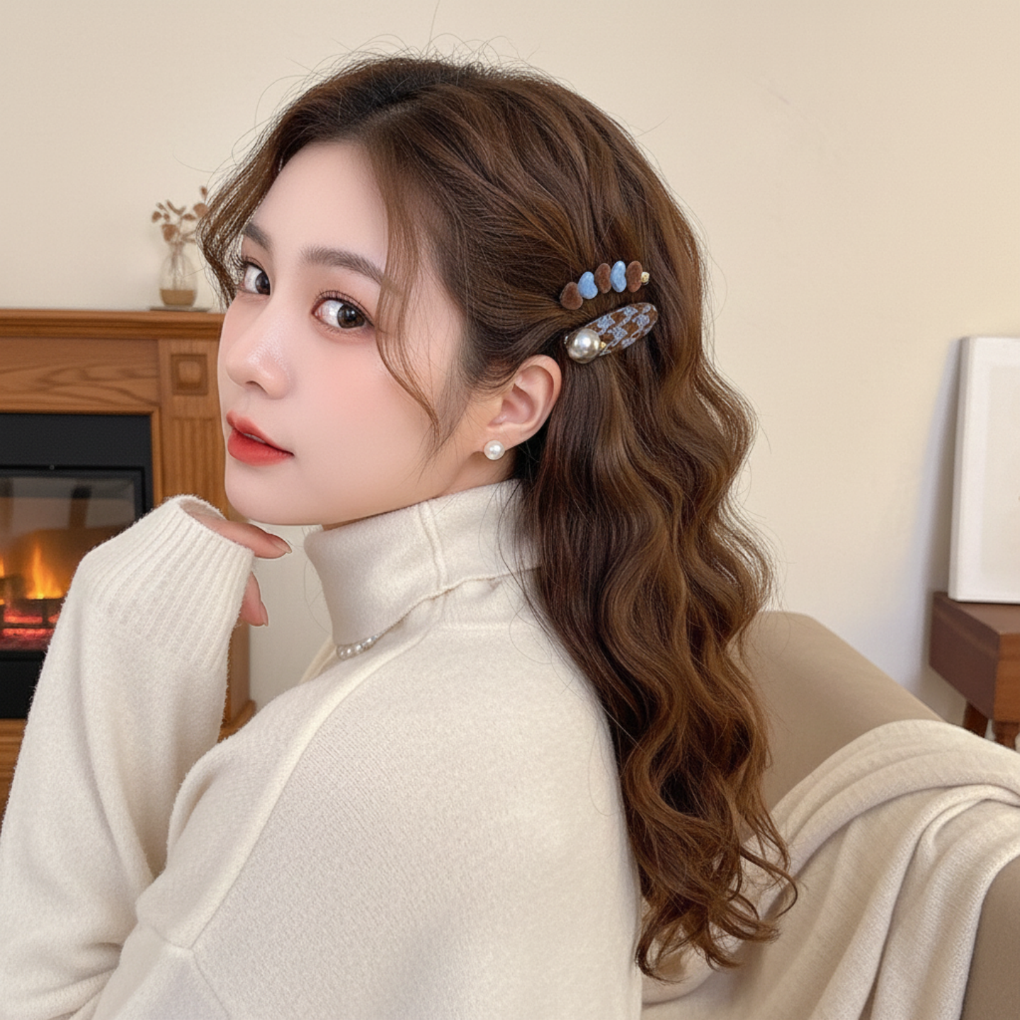 蓝色爱心发夹女秋冬前额一字发卡碎发侧边刘海夹2025鸭嘴夹子头饰