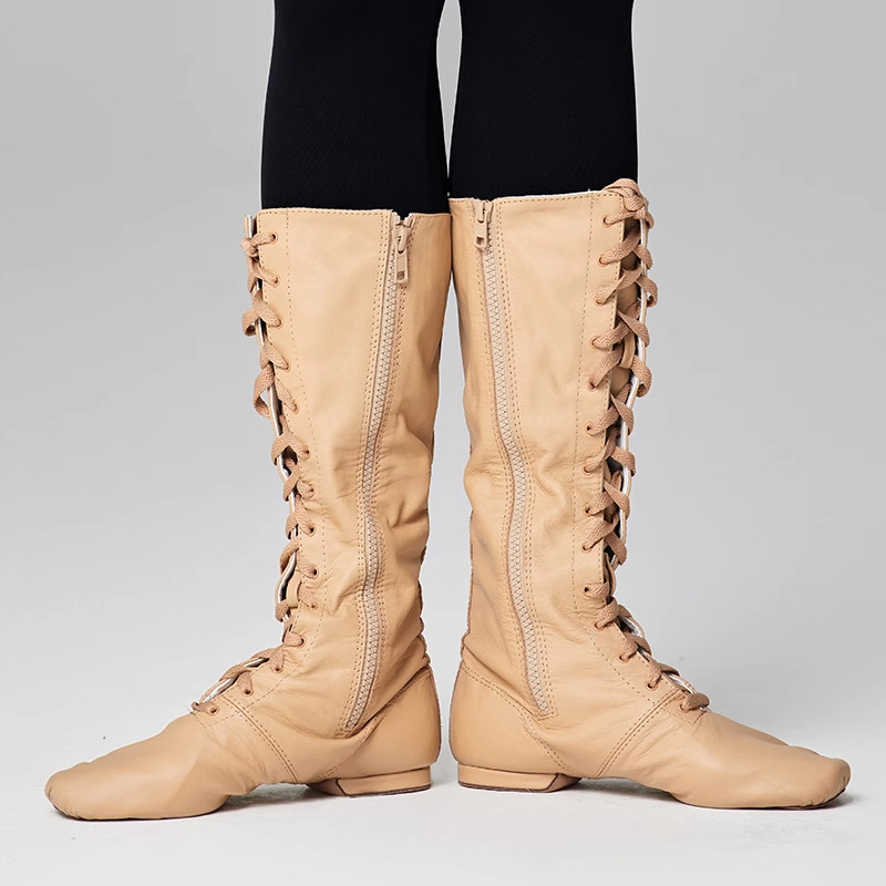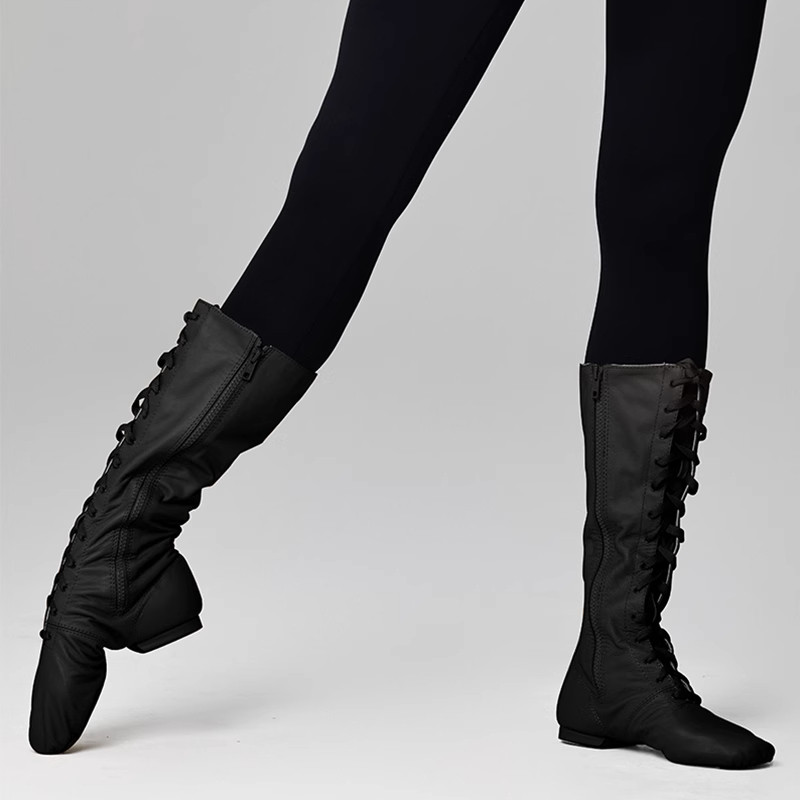 sansha/三沙芭蕾舞剧院靴 民族舞绑带款长筒靴侧边拉链蒙古舞蹈靴