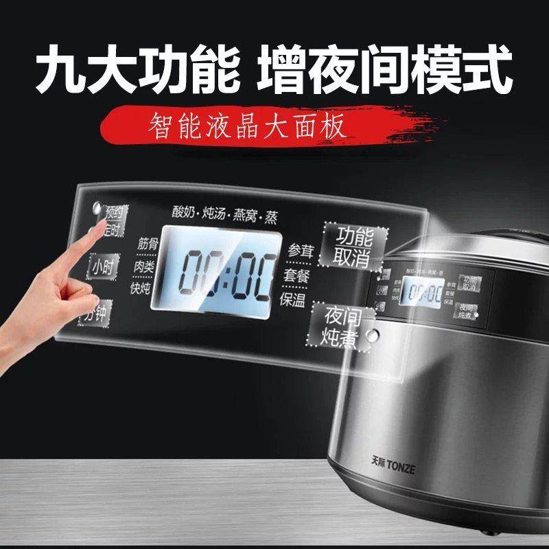 天际5L不锈钢大容量家用电炖锅隔水炖锅陶瓷煲汤3-8人智能全钢锅