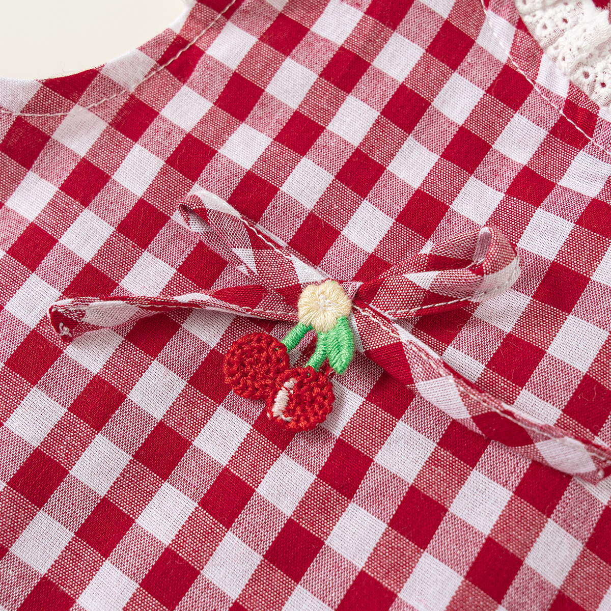 贝贝城小飞袖蝴蝶结格子花苞裙