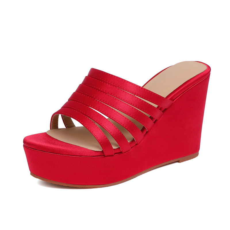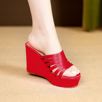 10cm春夏季新款真皮厚底凉拖鞋