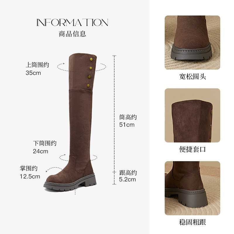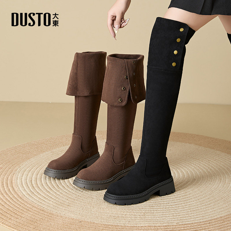 大东女靴超长靴2025冬季新款两穿过膝女长靴绒面粗跟瘦瘦靴袜子靴