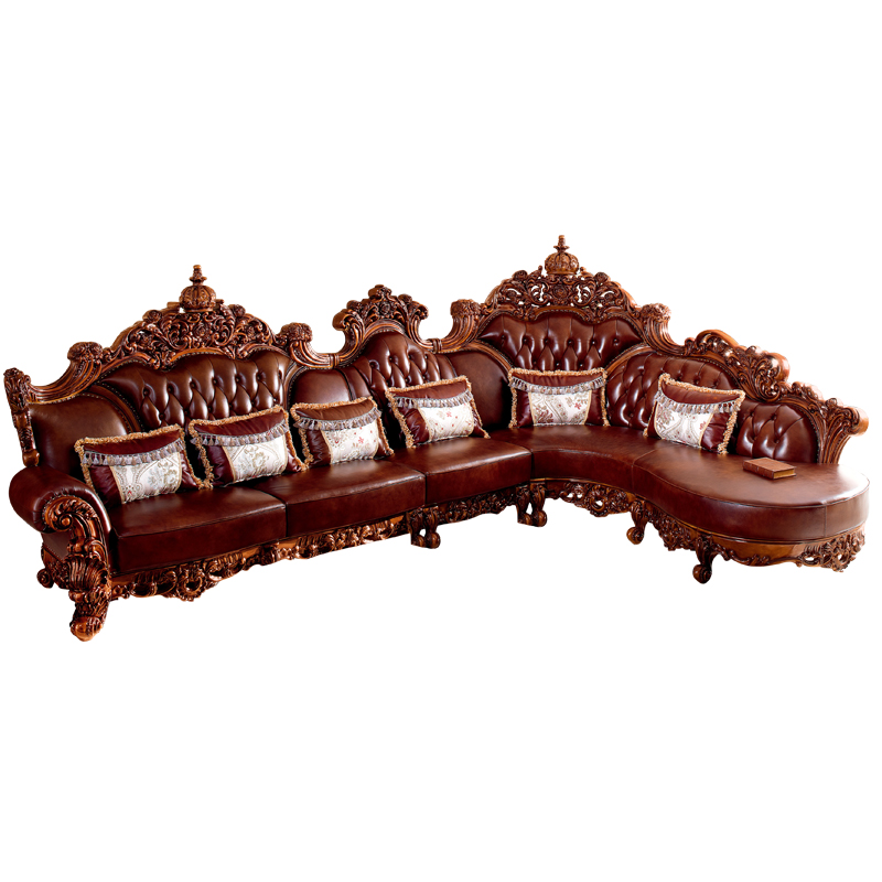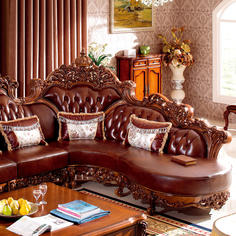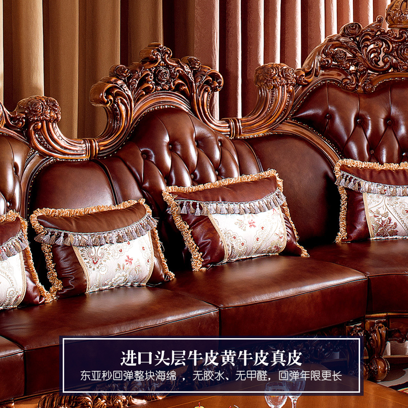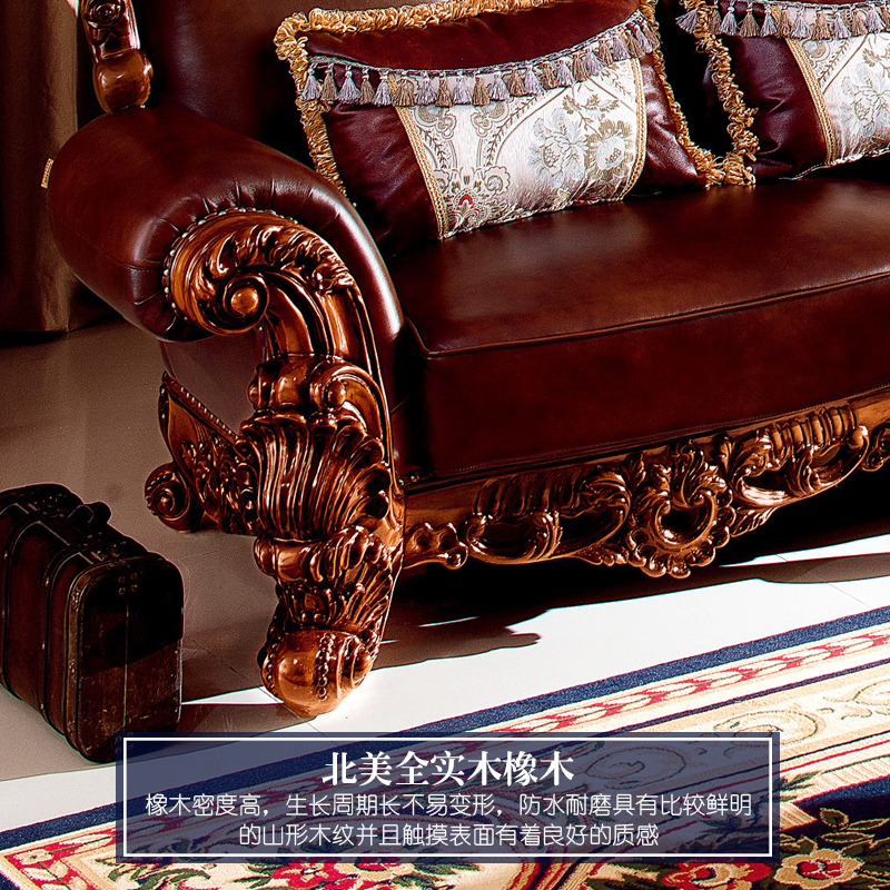 粤港欧式实木橡木真皮沙发客厅L型别墅客厅成套家具整装866