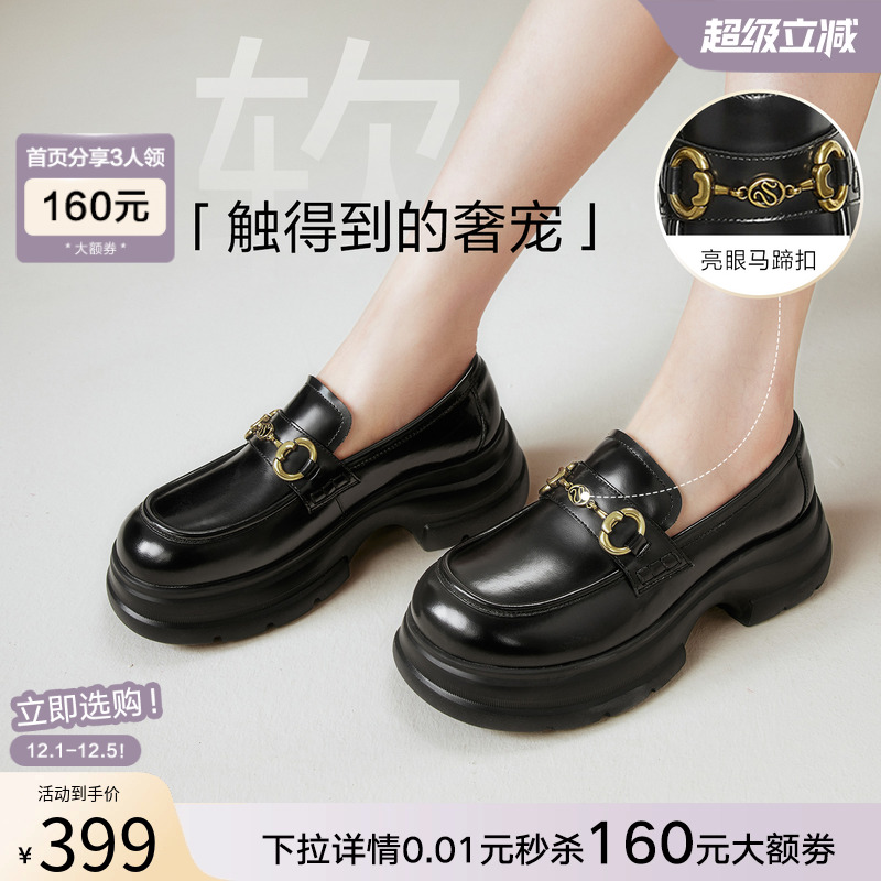 百思图2025秋商场新款牛皮厚底增高乐福鞋通勤深口女单鞋VZF14CA5