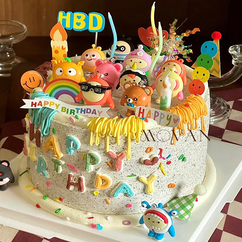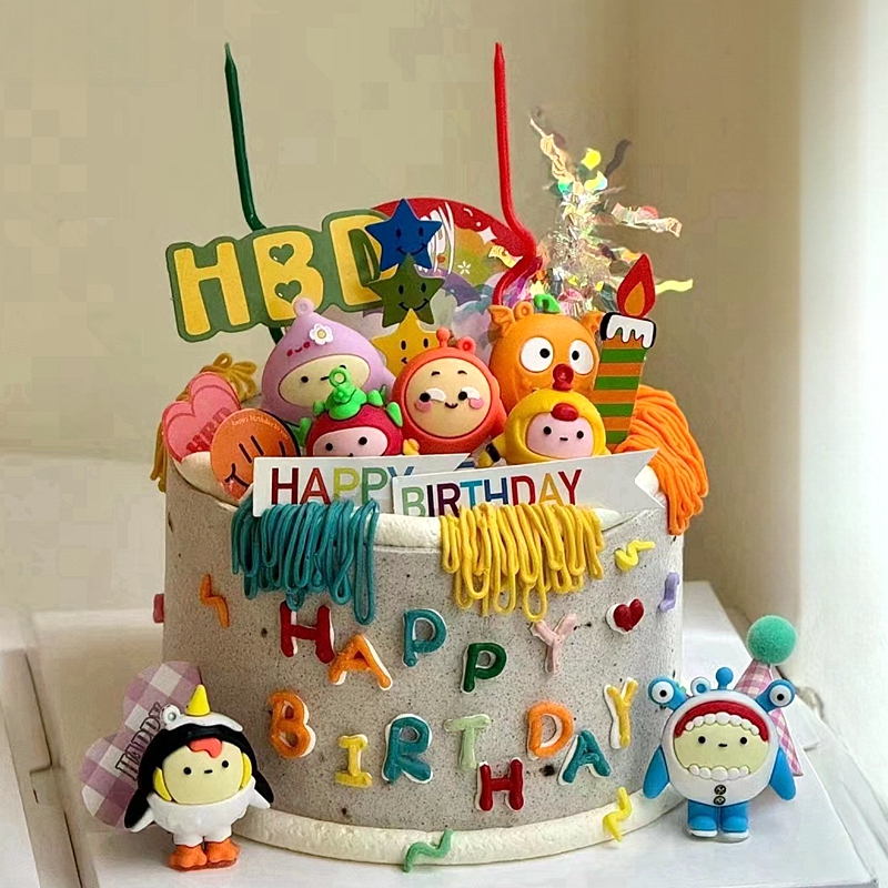 网红蛋仔派对蛋糕装饰摆件卡通仔仔小熊儿童宝宝生日蛋糕装饰套装