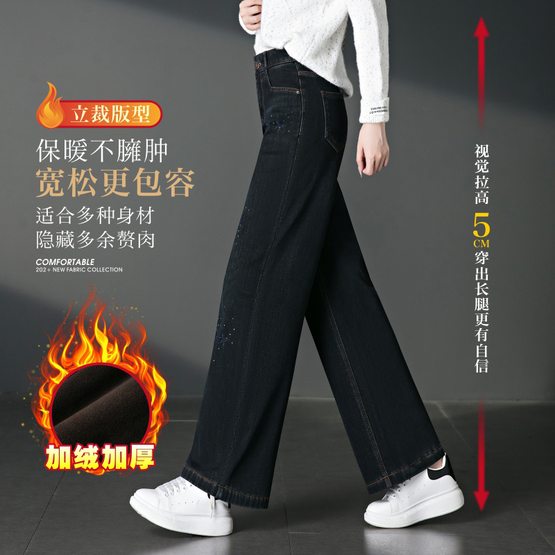 窄版阔腿牛仔裤女加绒秋冬2025年新款弹力高腰宽松大码女士长裤子