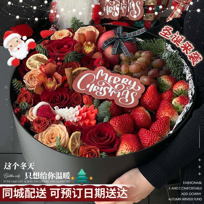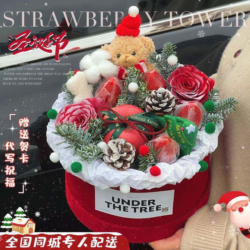 元旦节跨新年苹果草莓花束水果礼盒鲜花速递同城广州上海北京配送