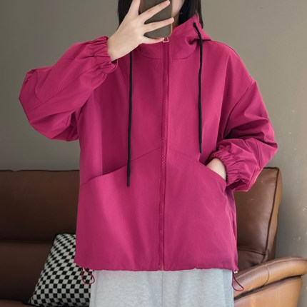 2025春秋新款学院风夹克外套女短款小个子休闲宽松学生连帽冲锋衣