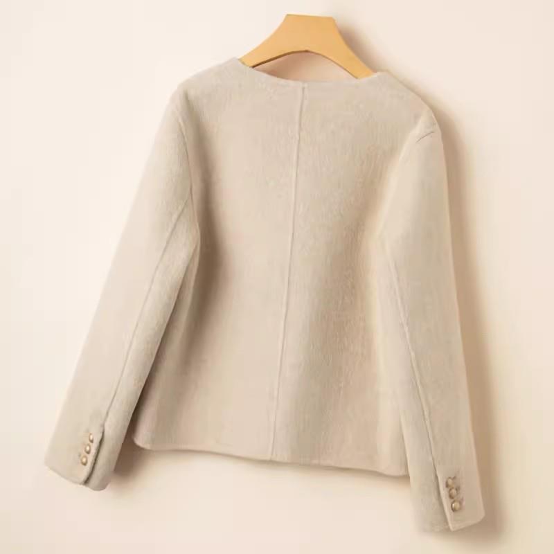 小香风高端双面羊绒大衣女短款小个子圆领2024秋冬新款羊毛呢外套