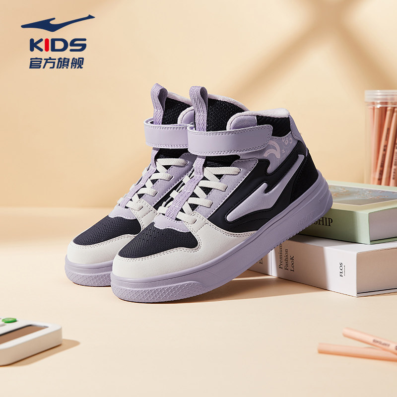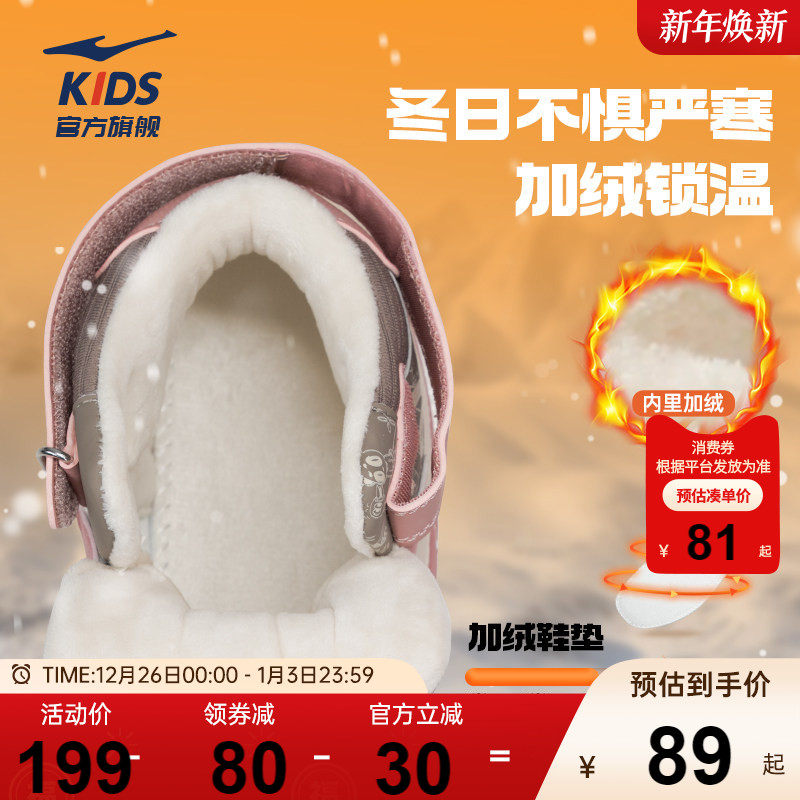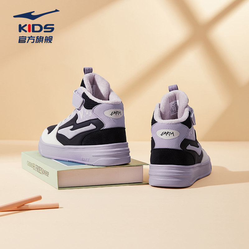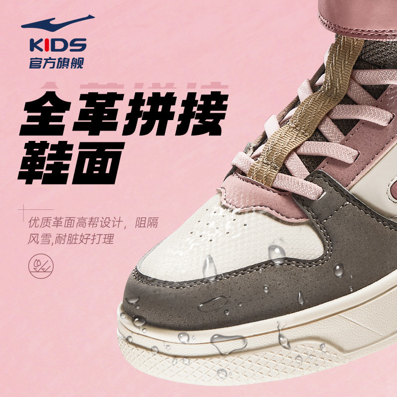 鸿星尔克童鞋冬季新款女童冬鞋革面加厚加绒滑板鞋二棉鞋儿童鞋子