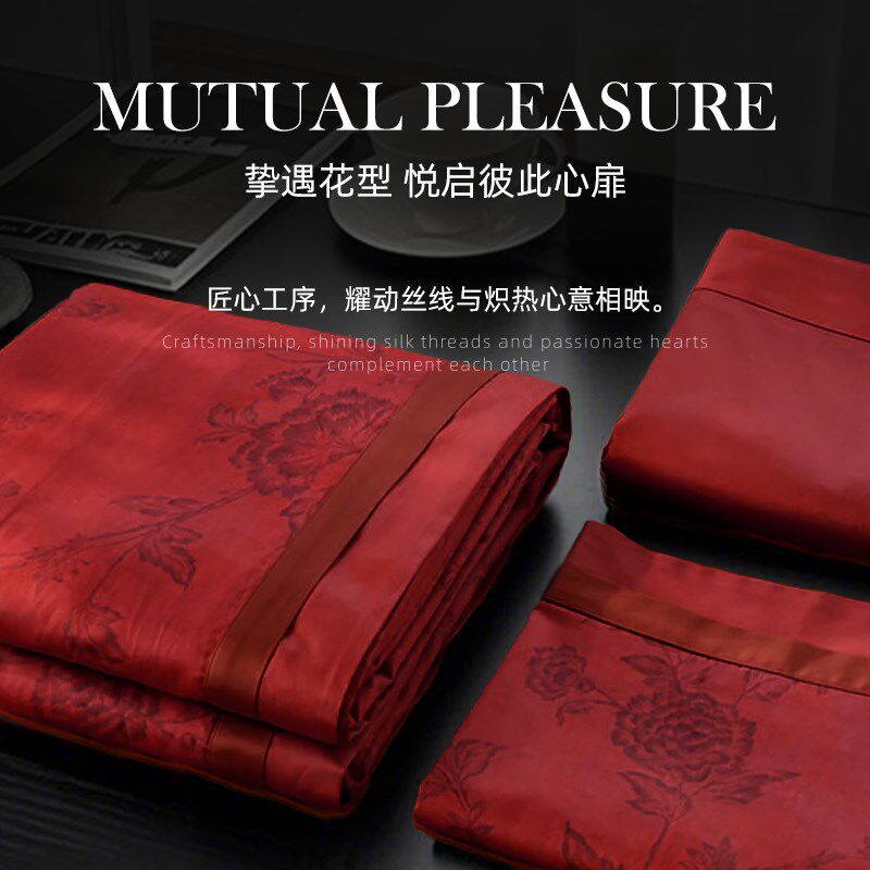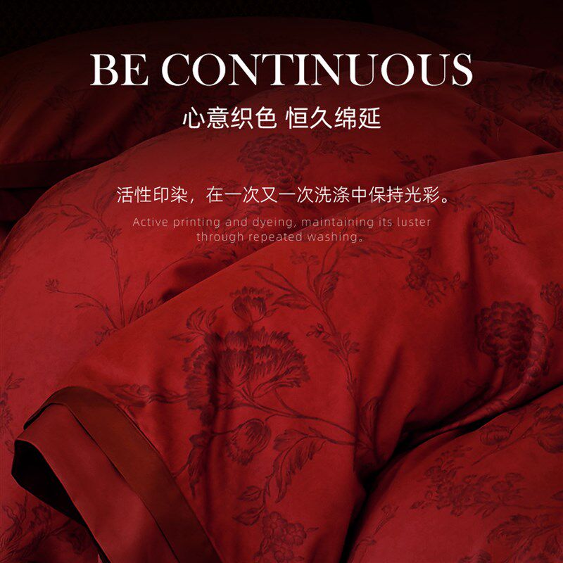 斯得福100S长绒棉全棉红色结婚四件套床上用品床单被套婚庆套件