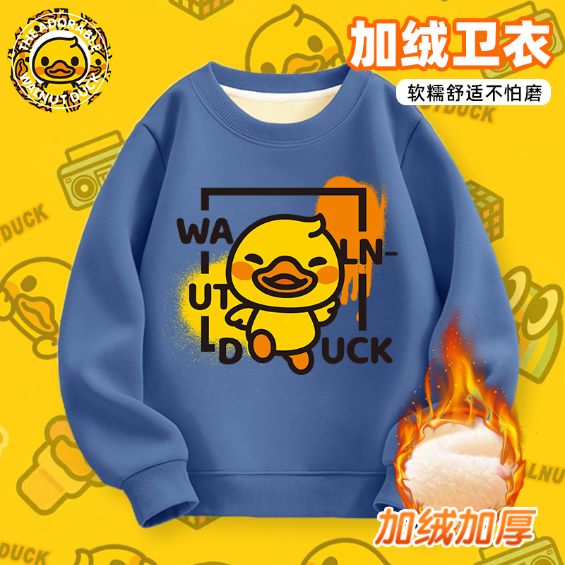 小黄鸭儿童加绒卫衣男童秋冬季一体绒上衣女童卡通休闲运服打底衫