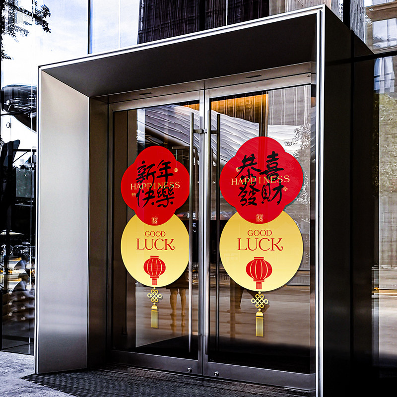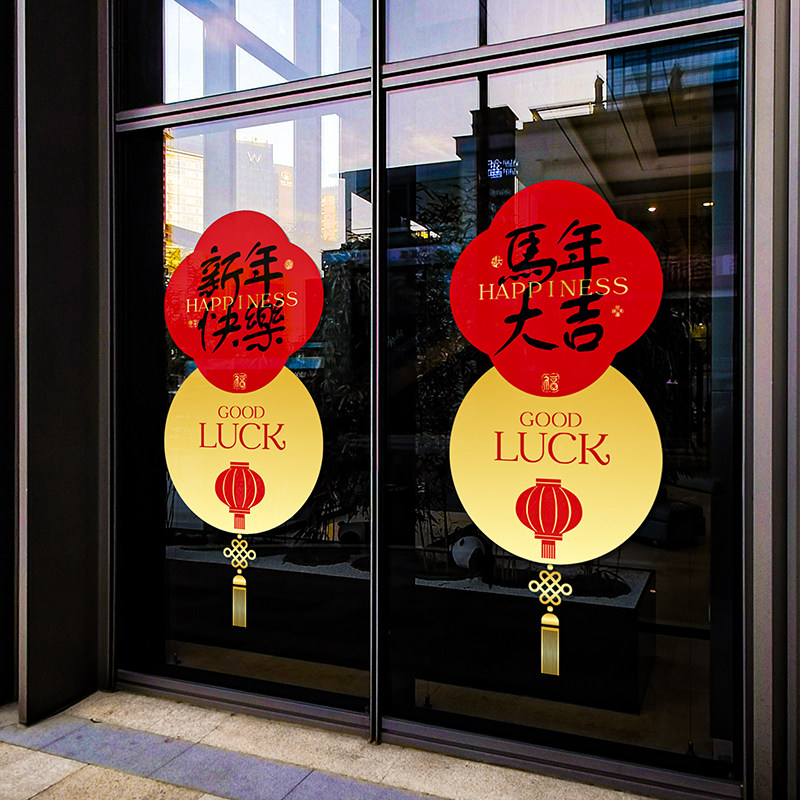 马年灯彩喜庆玻璃门装饰贴纸静电商场店铺橱窗过年贴画窗花高级感