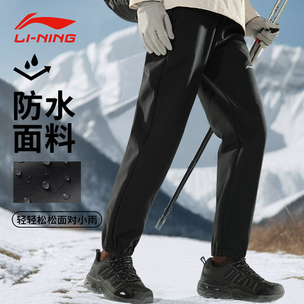 李宁束脚男防风防水薄绒冲锋长裤
