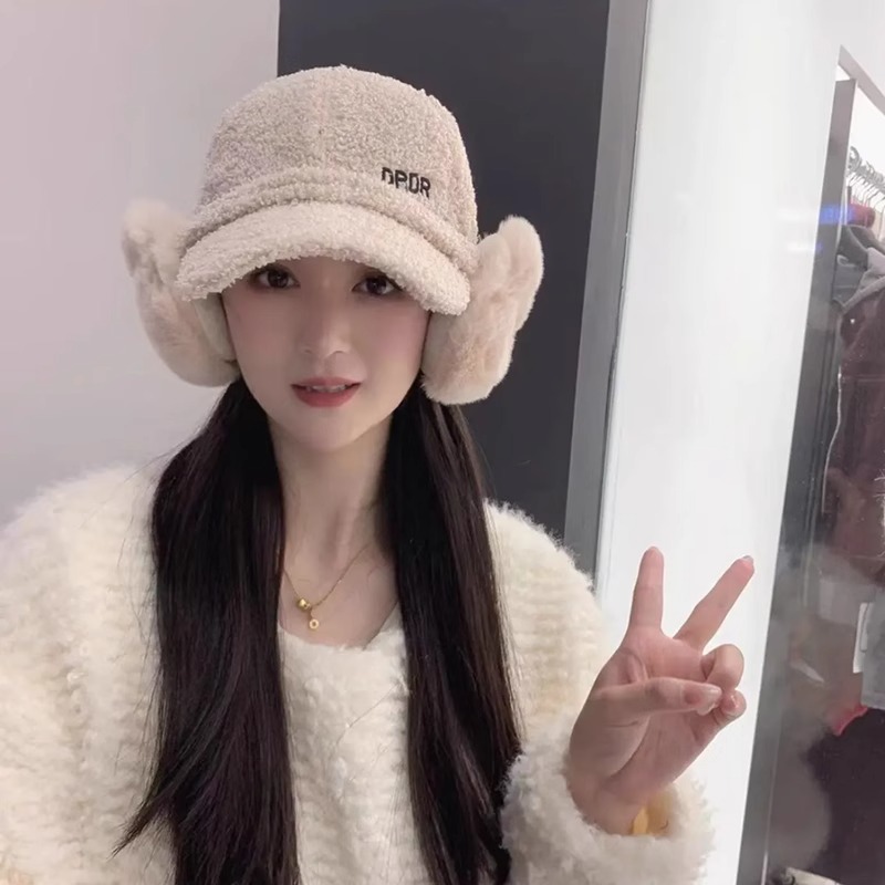 2025新款可扎马尾红色棒球帽子女秋冬季户外骑行保暖羊羔绒鸭舌帽