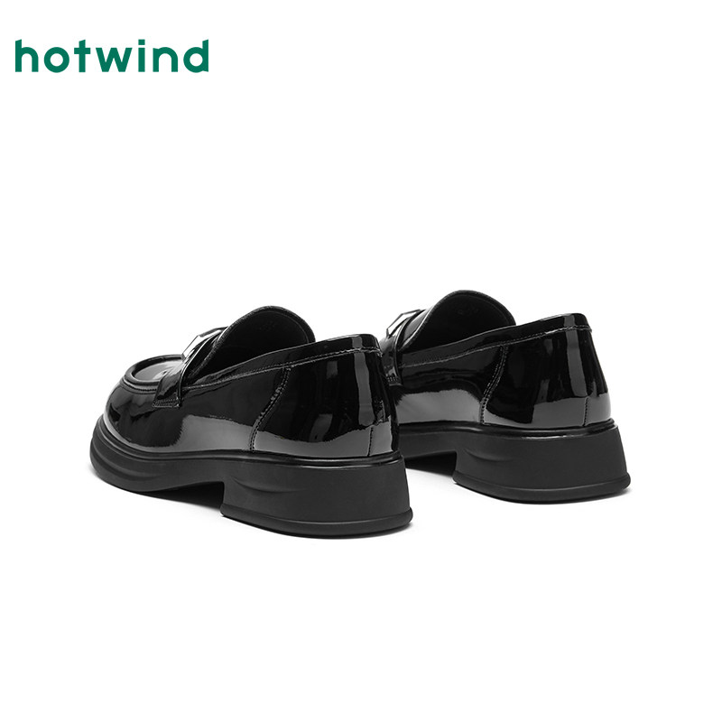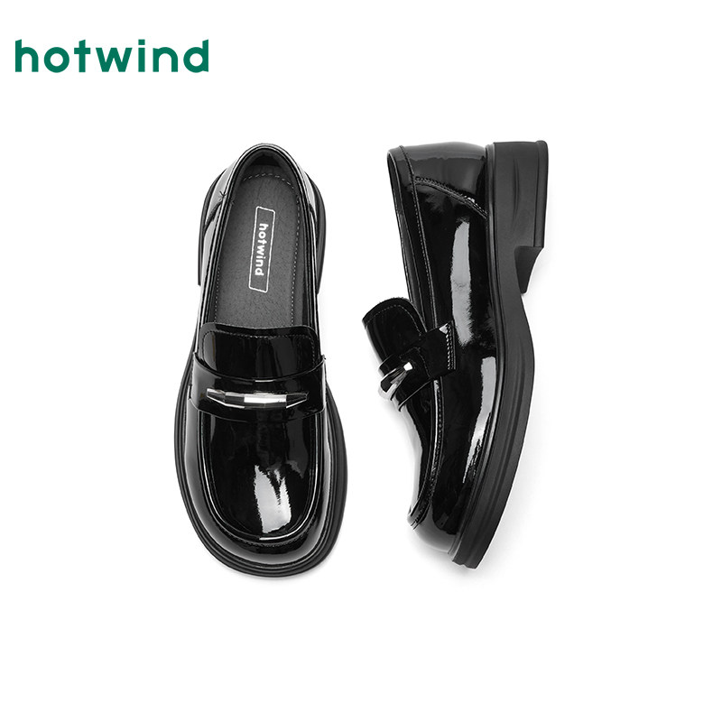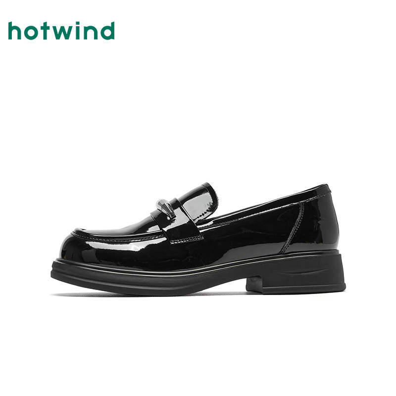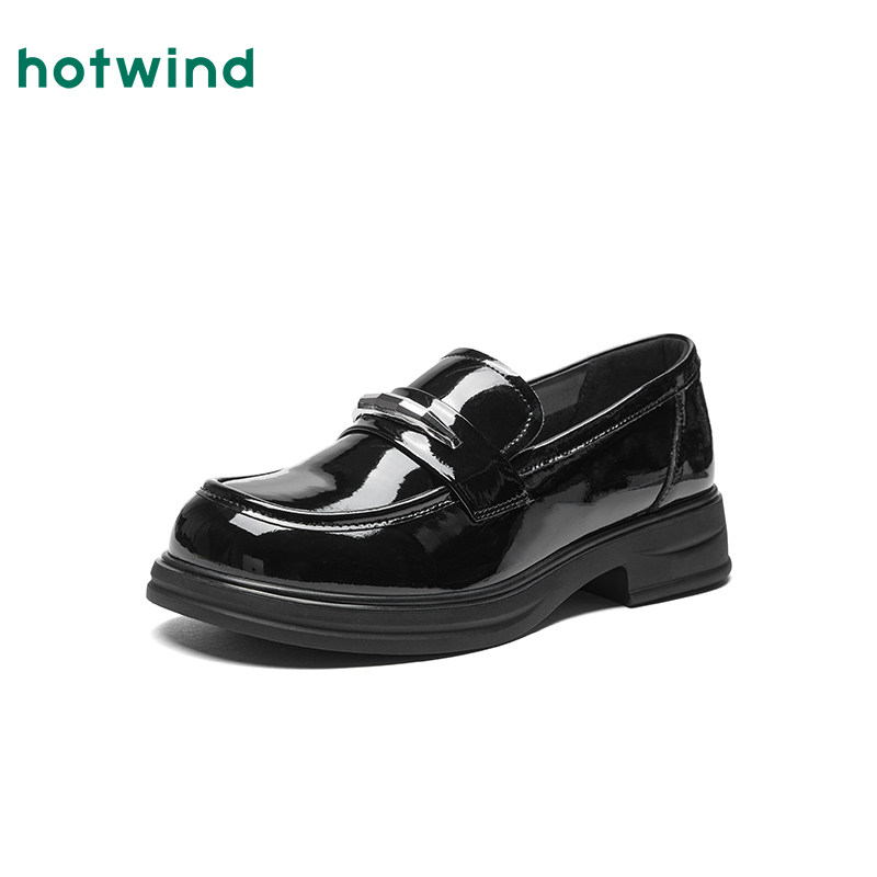 热风黑色乐福鞋女鞋2026年春季新款粗跟时尚单鞋百搭浅口小皮鞋