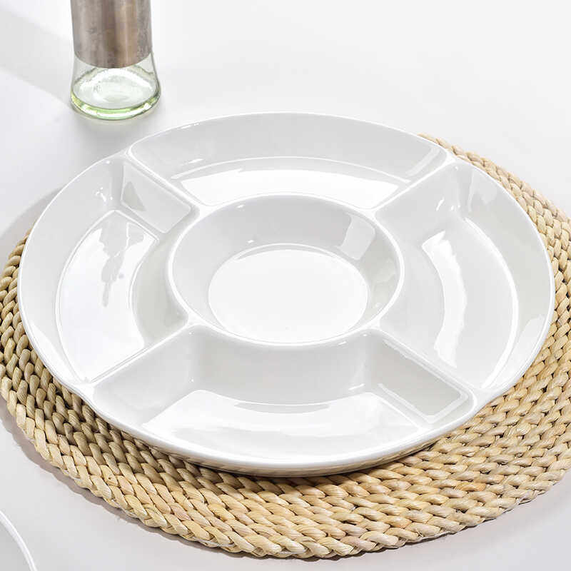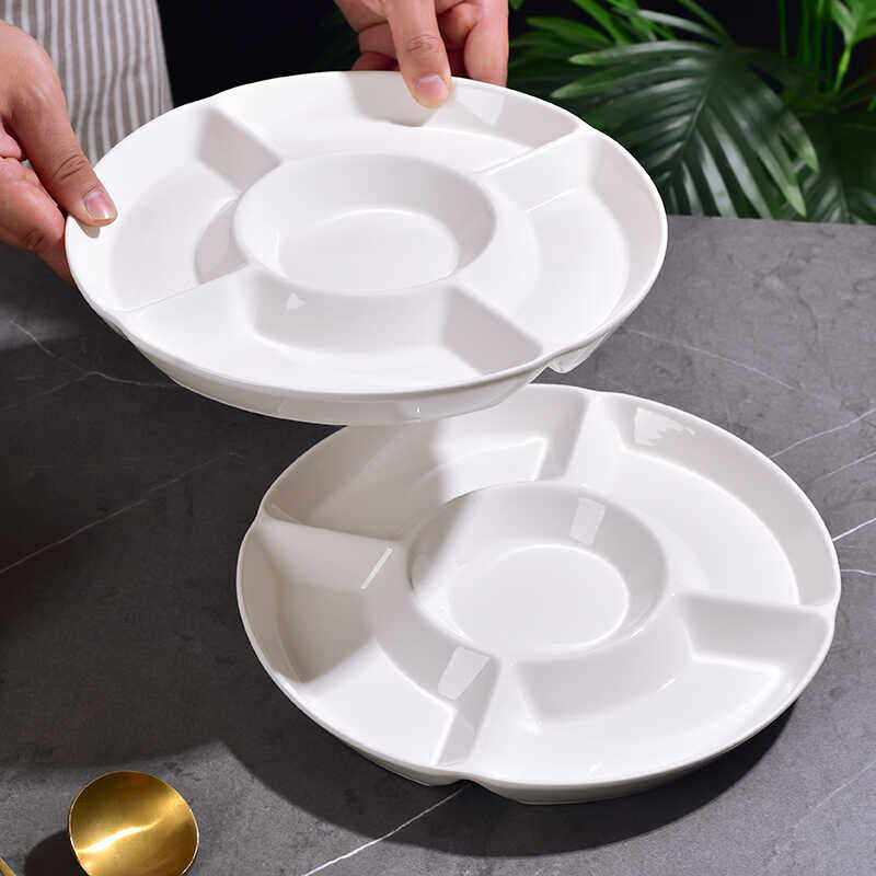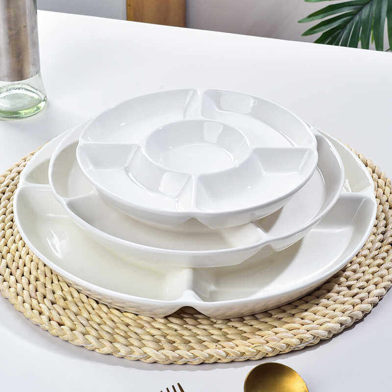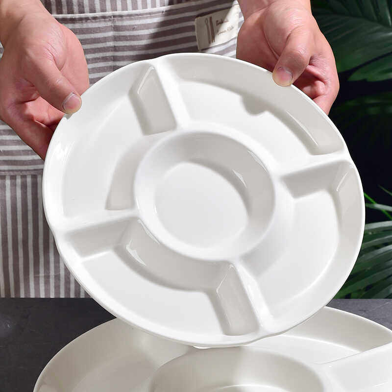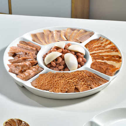 盘子陶瓷酒店餐具特色卤味拼盘五果盘创意拼盘五格盘子圆形水果盘