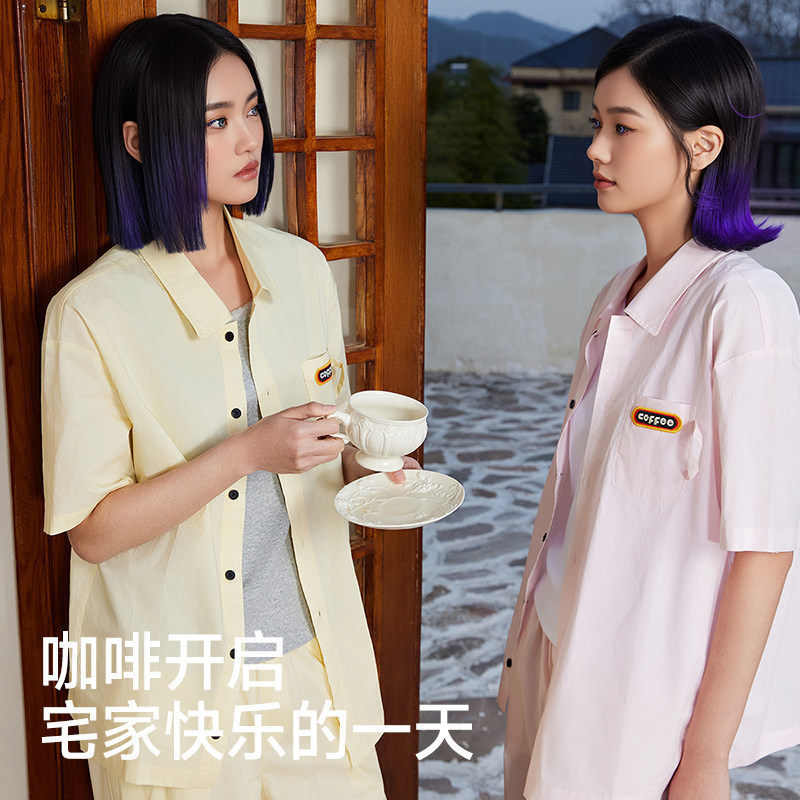 【咖啡续命】螃蟹秘密情侣睡衣短袖可外穿衬衫家居服春夏2026新款