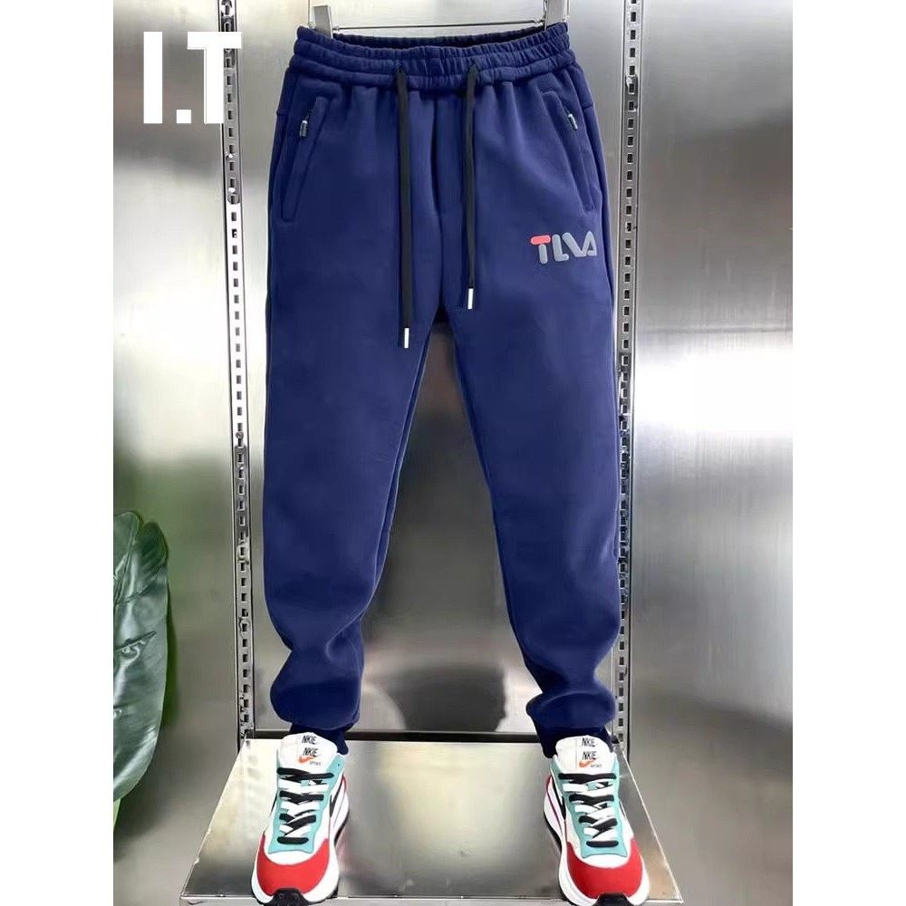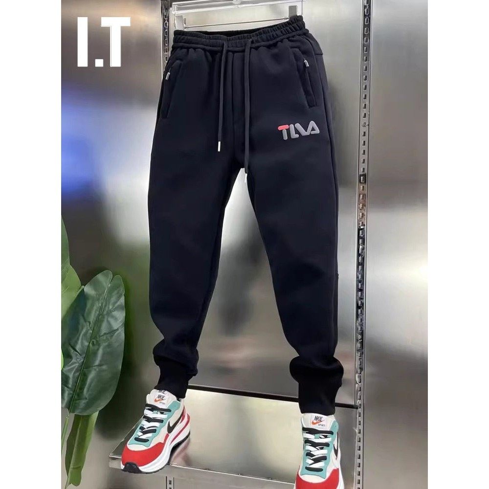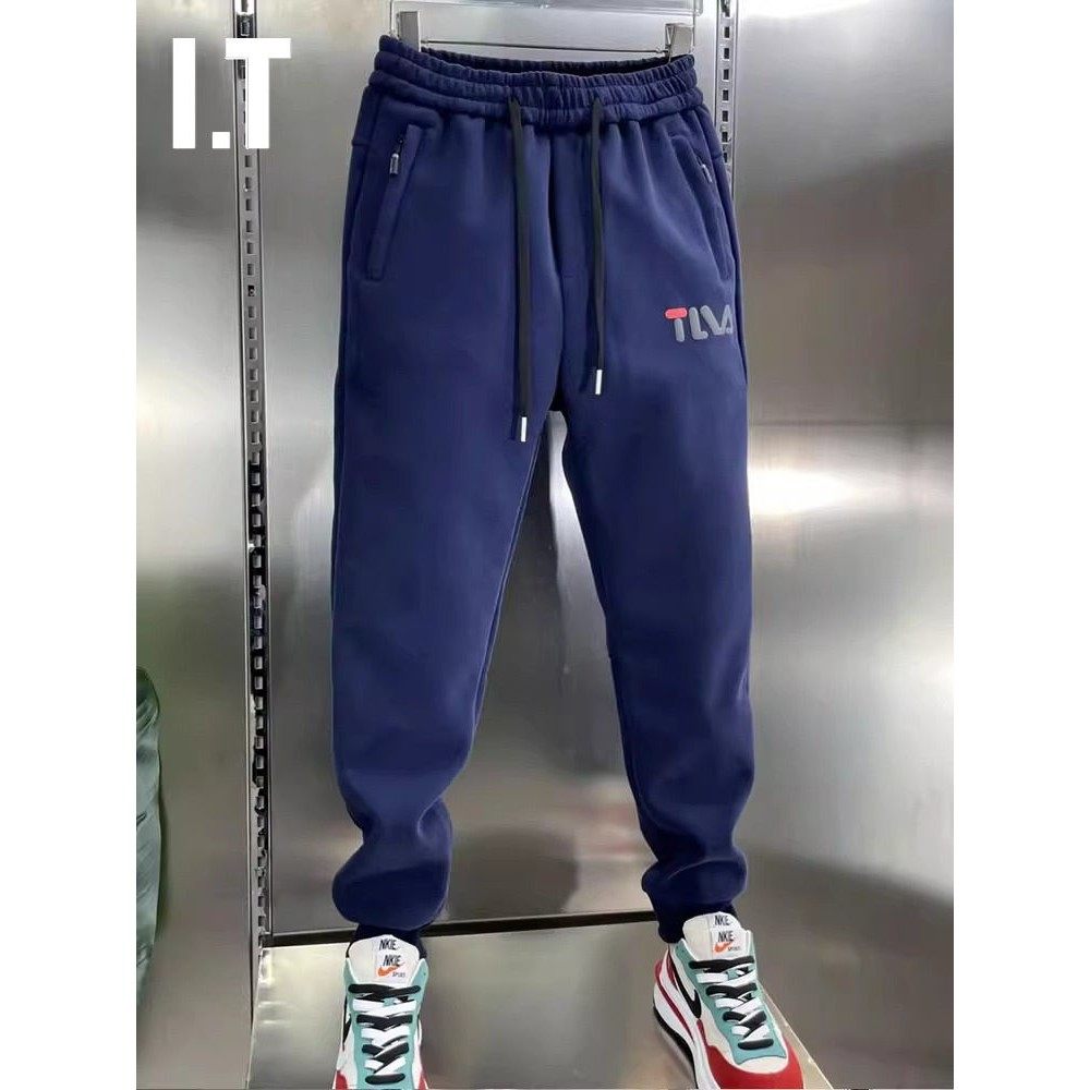 潮牌夏季薄款冰丝宽松束脚运动裤男士大码休闲卫裤拼接小脚长裤子