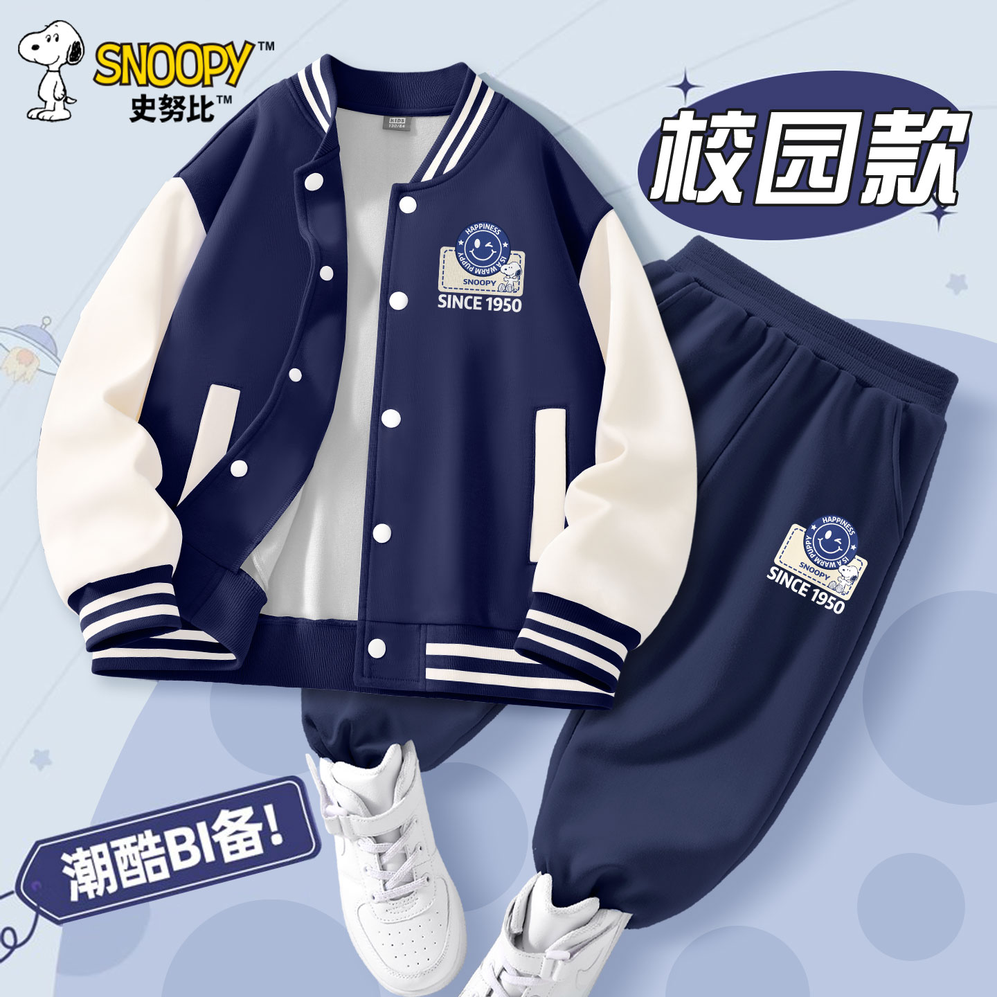史努比男童套装春秋2025新款儿童棒球服男孩帅气炸街酷外套春秋装