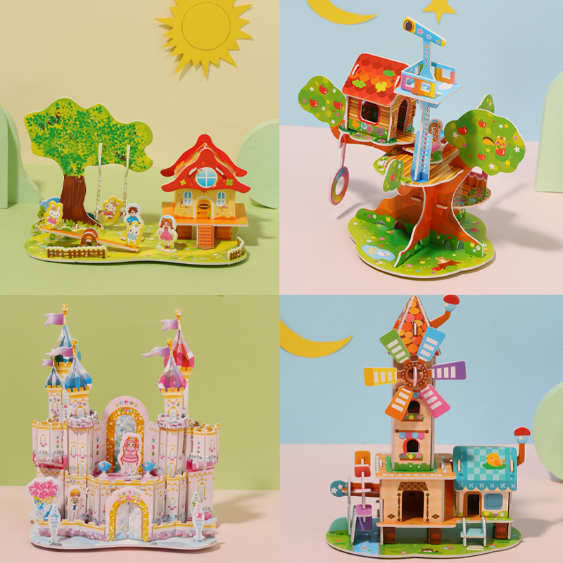 儿童种植3d立体积木拼图3到6岁益智玩具手工DIY男孩女孩房子动物