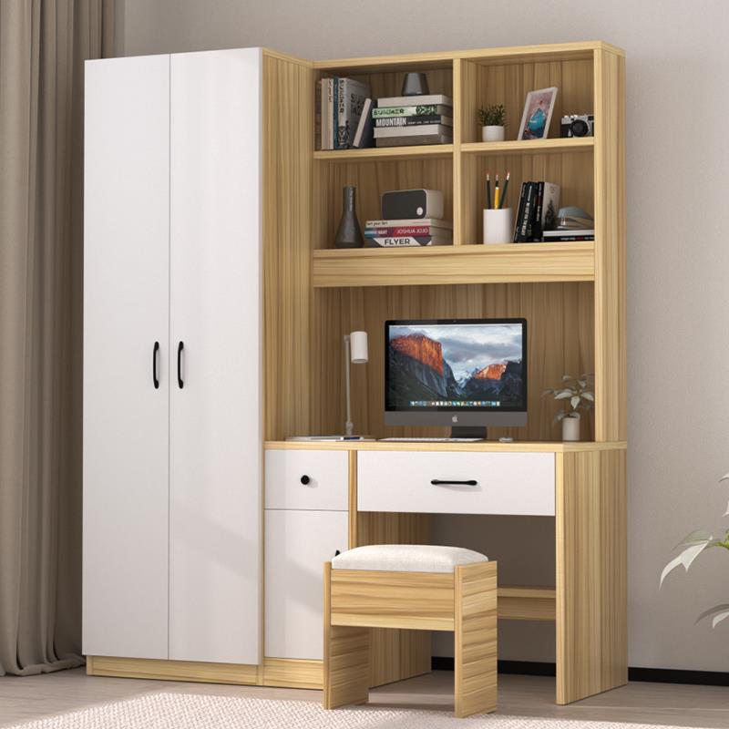 简约书桌带衣柜一体儿童房电脑书柜组合小户型衣柜家用卧室写字台
