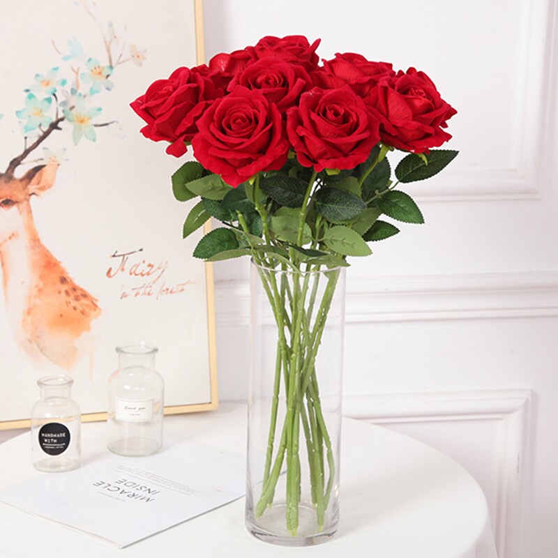 高仿真绒布玫瑰花10支客厅装饰花