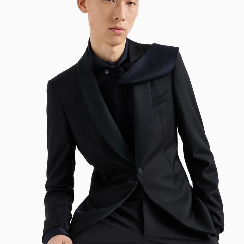 EMPORIO ARMANI/阿玛尼秋冬男士全绵羊毛青果领正装商务西装外套