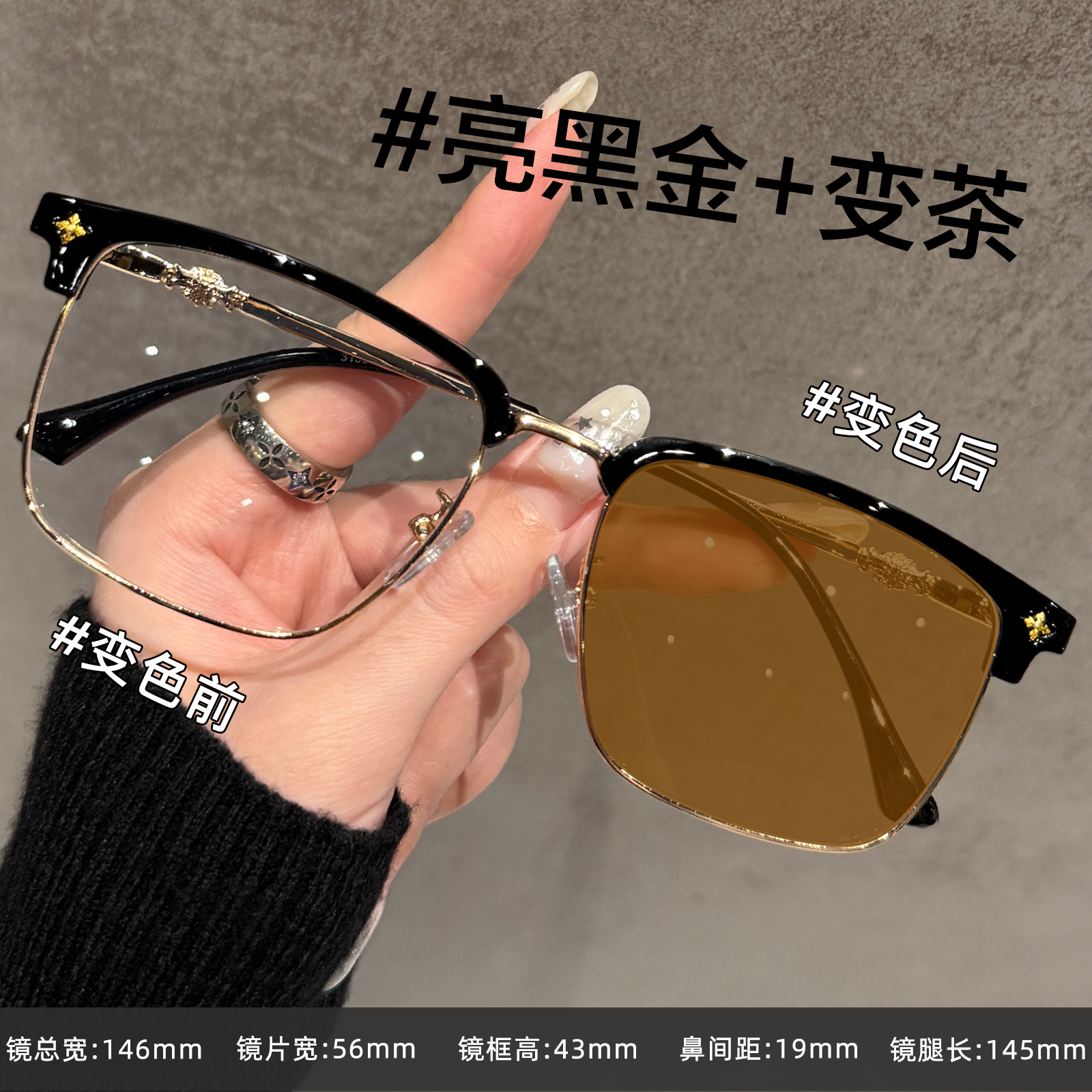 感光变色半框近视眼镜男款商务显脸小理工男可配度数防蓝光眼睛框