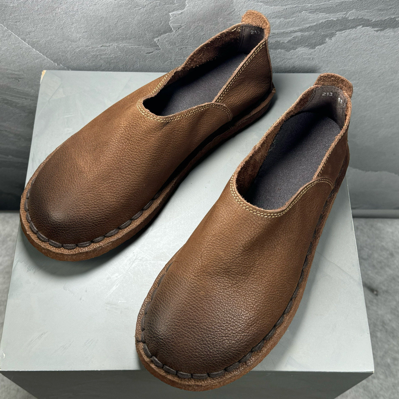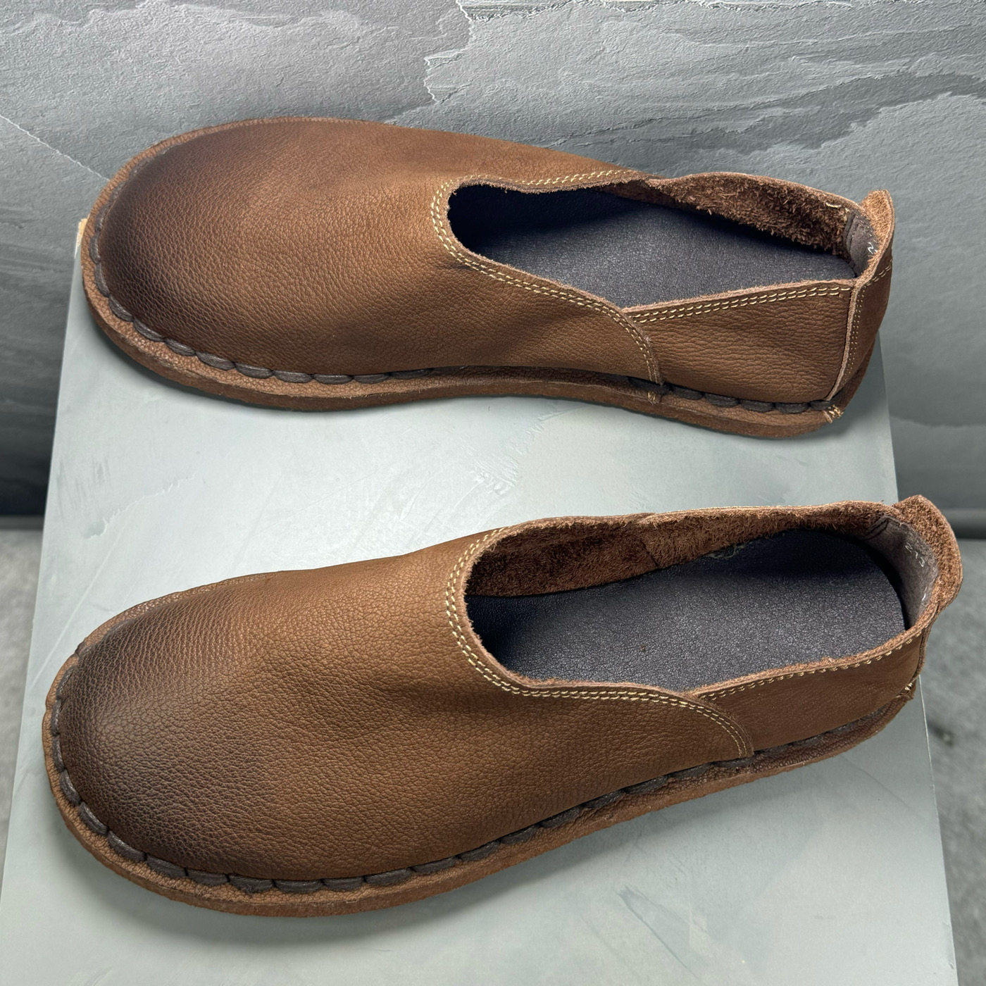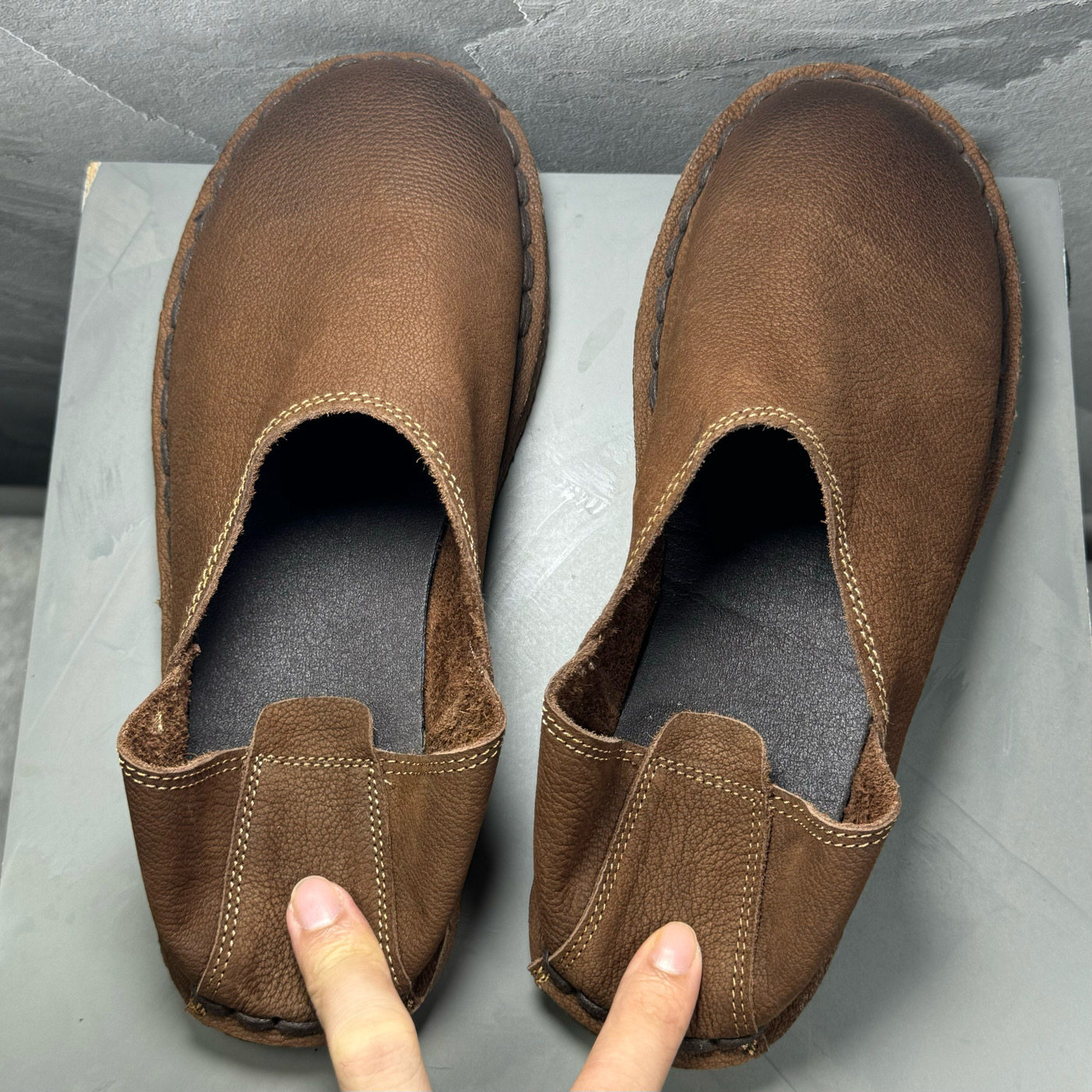 新款夏季透气单层牛皮鞋男士真皮休闲一脚蹬懒人真皮软底浅口单鞋