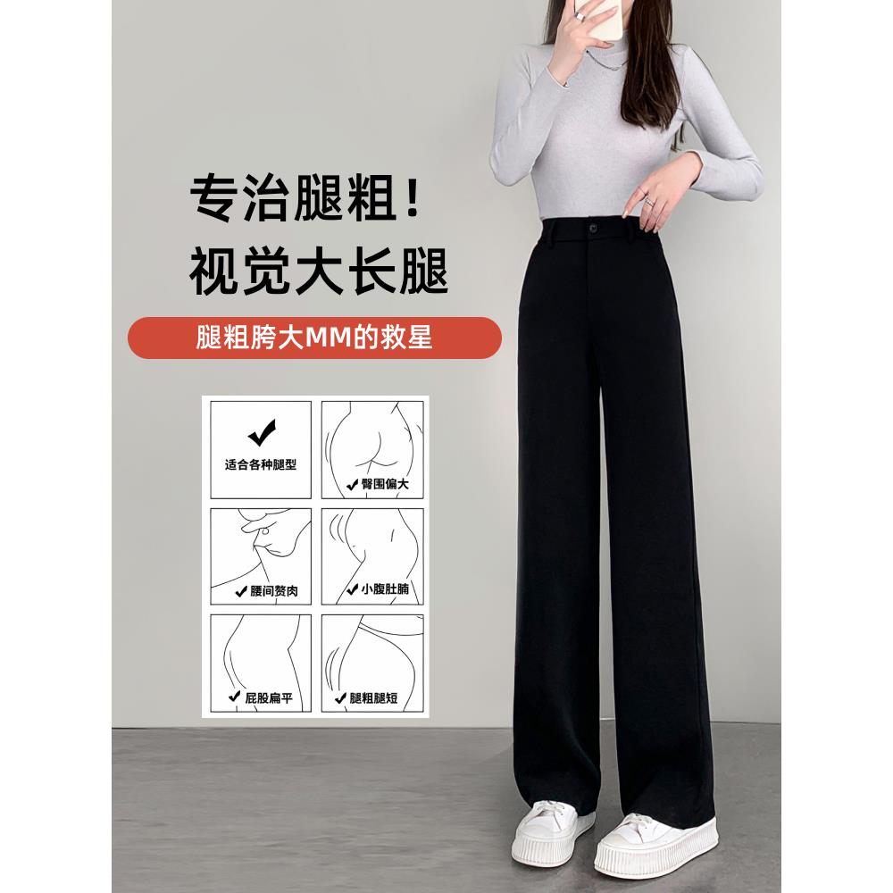 黑色阔腿裤女2025春秋新款高腰垂感小个子休闲窄版直筒西装长裤子