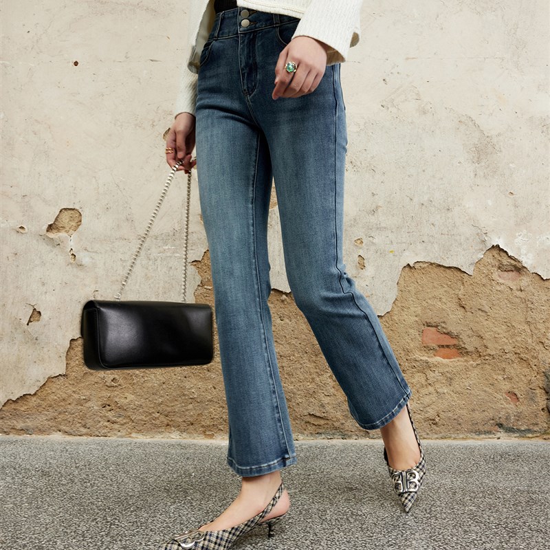 芝美日禾 修身四面弹九分微喇牛仔裤女复古水洗高腰显瘦显腿长