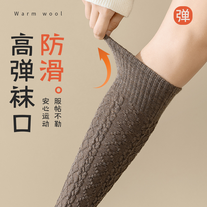 羊毛小腿袜子女款秋冬季微压显瘦长筒袜防滑不掉筒保暖百搭高筒袜