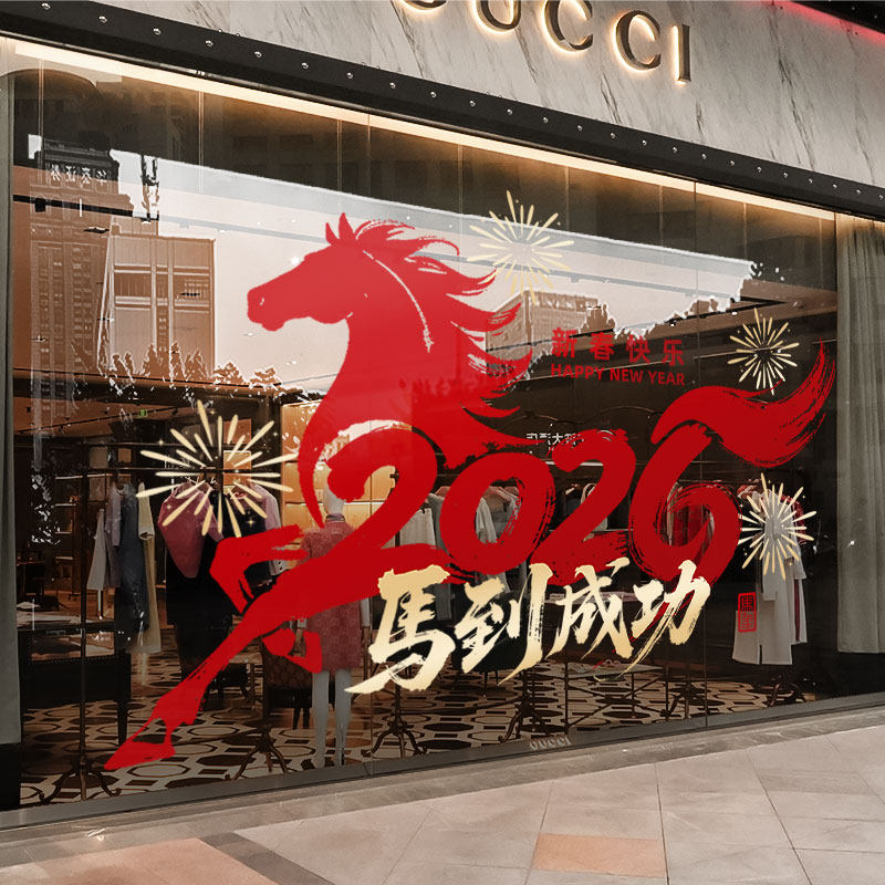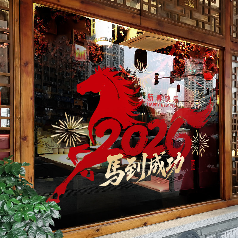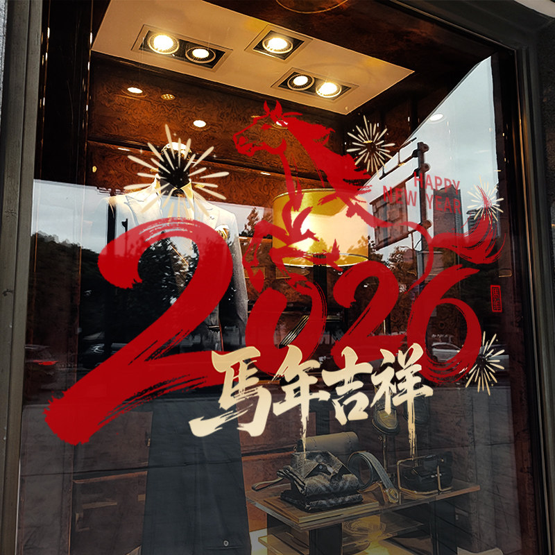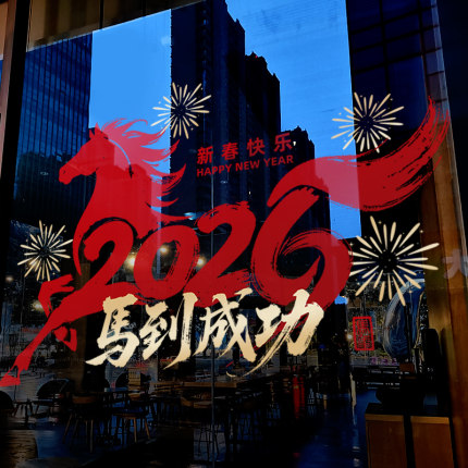 新年装饰窗花贴画春节马年橱窗氛围布置玻璃门贴纸过年2026静电贴