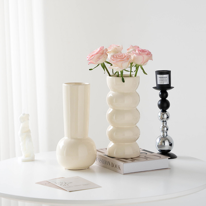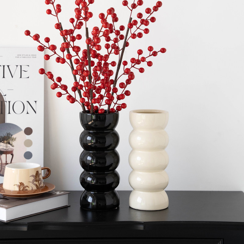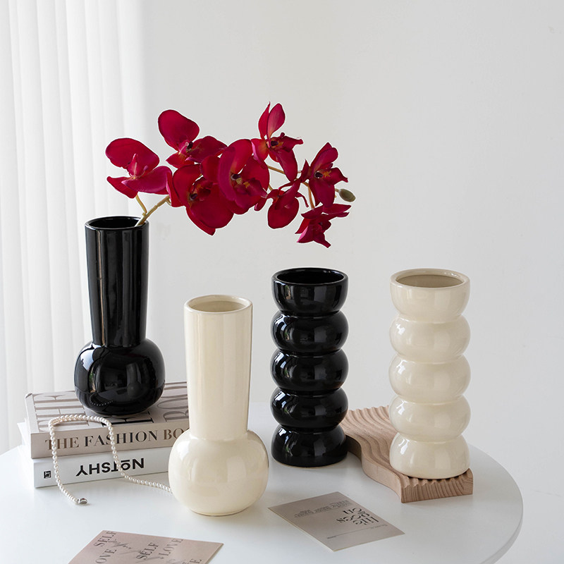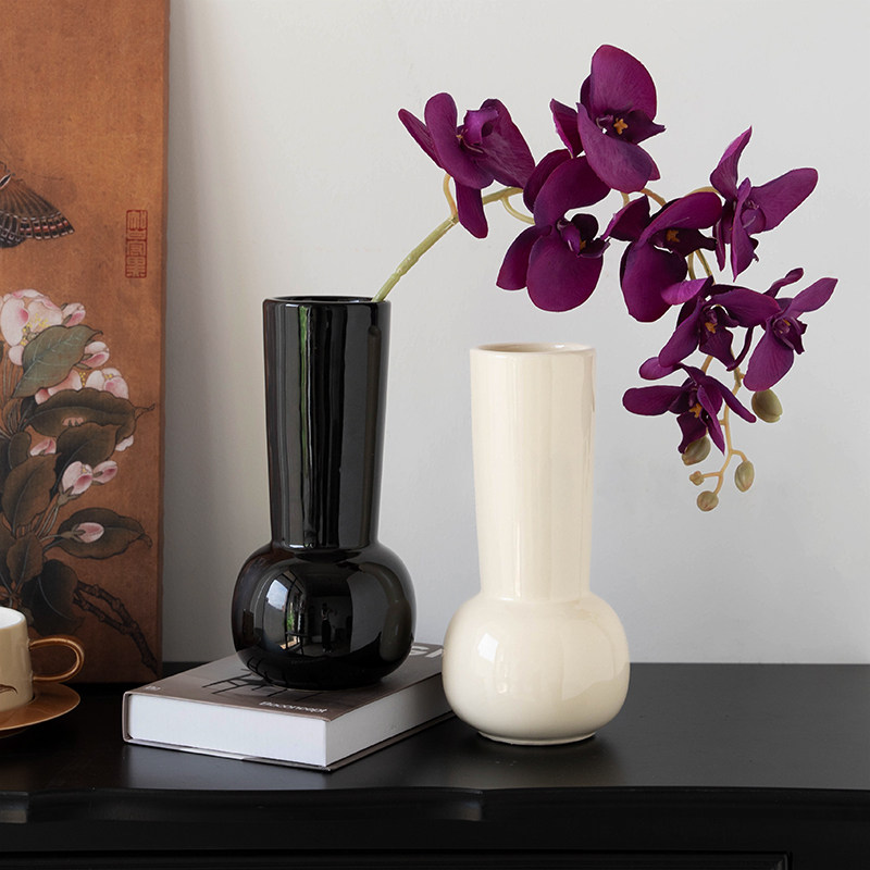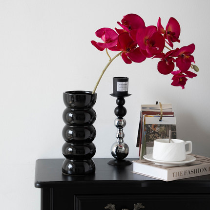 轻奢中古高级感黑色陶瓷花瓶复古创意客厅插花水培鲜花瓶装饰摆件
