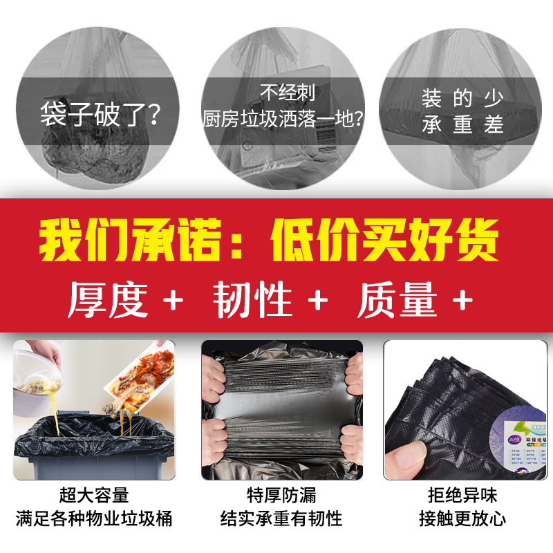 平口垃圾袋商用餐饮特大号黑色加厚酒店物业工业饭店塑料袋袋子