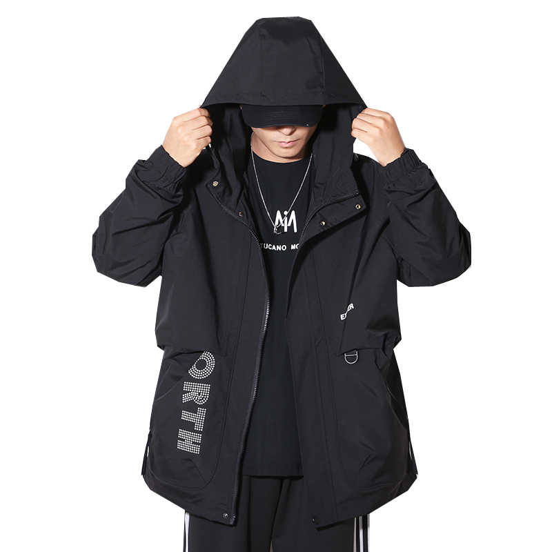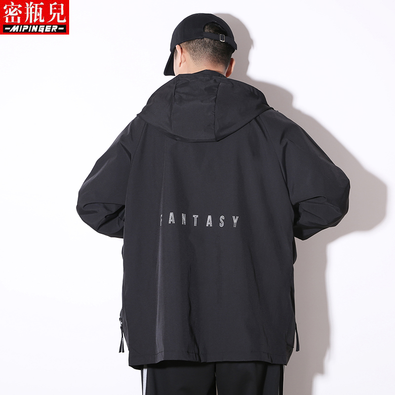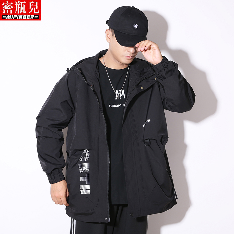 密瓶儿中长款外套风衣男宽松秋季男士加肥加大胖子男装潮牌青少年