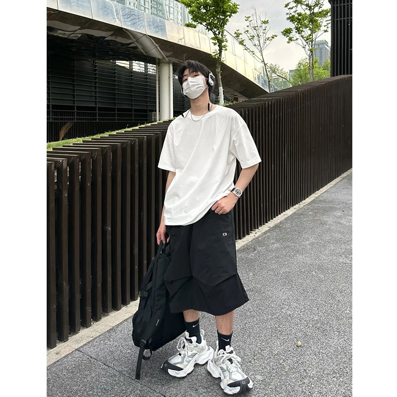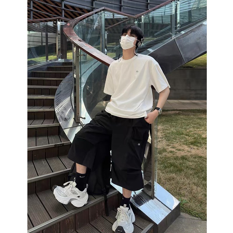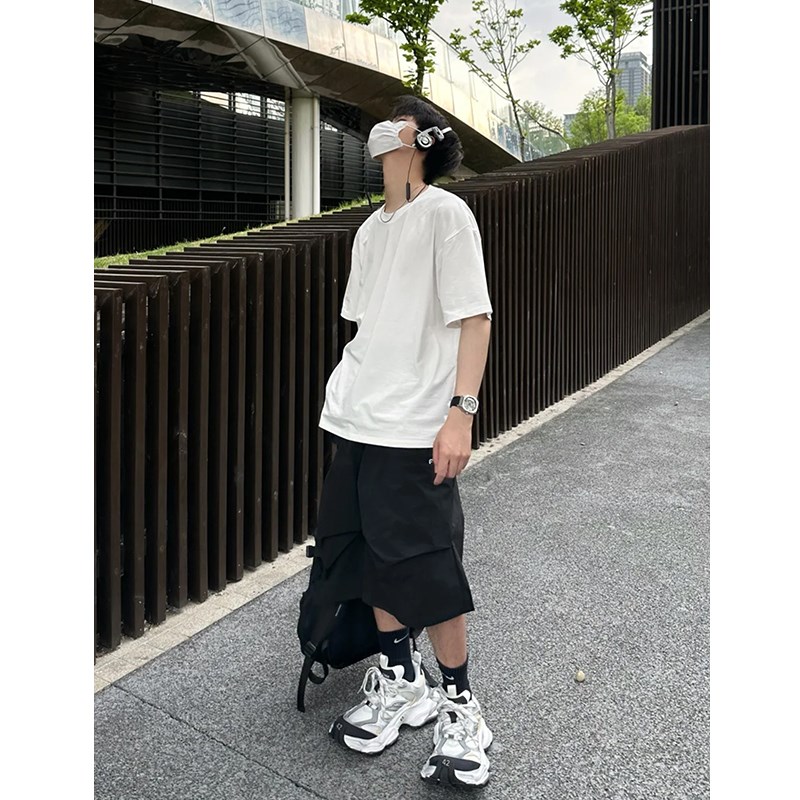 夏季户外机能风七分阔腿伞兵裤男日系复古工装设计感宽松休闲裤子