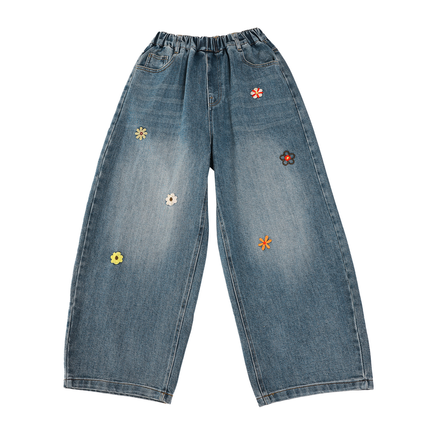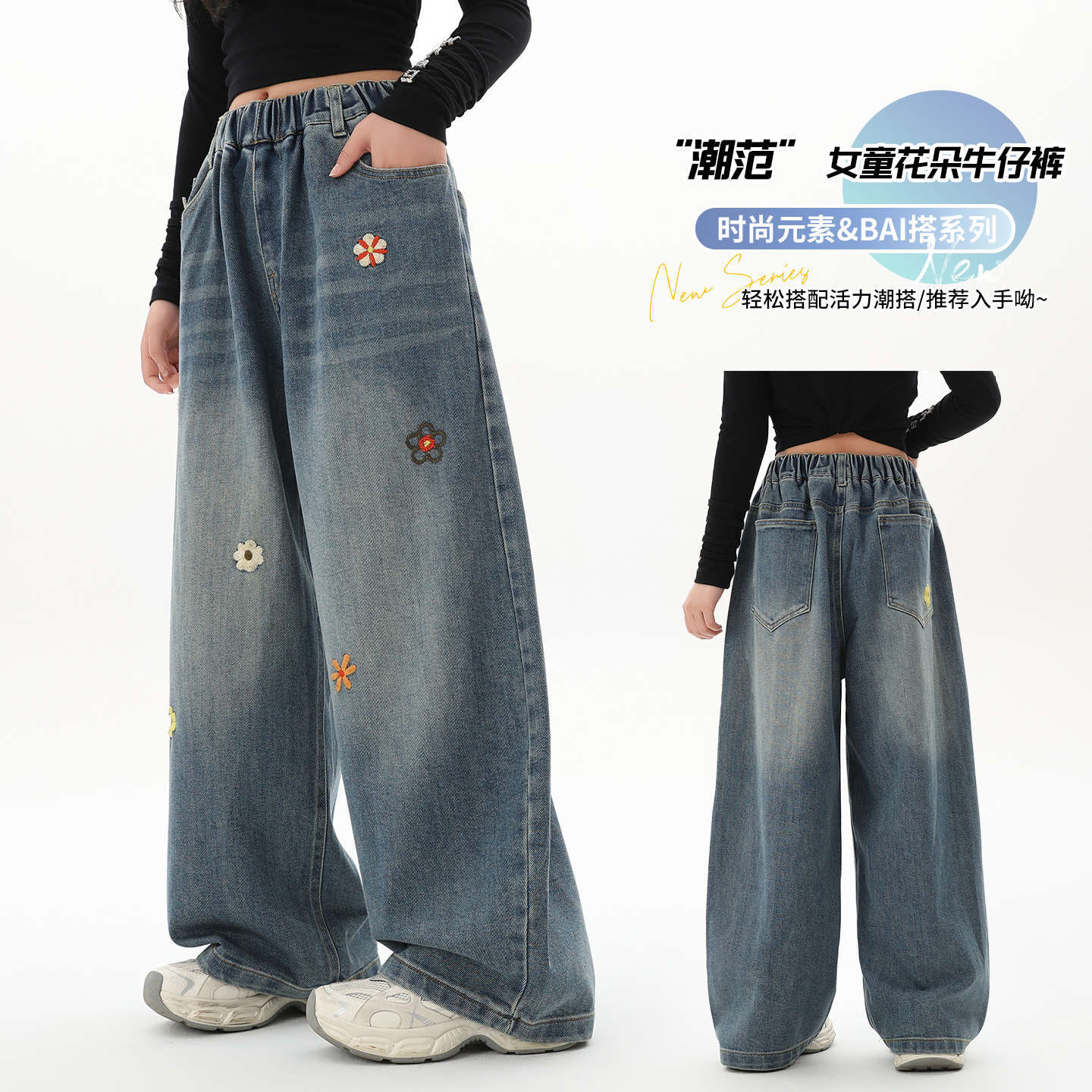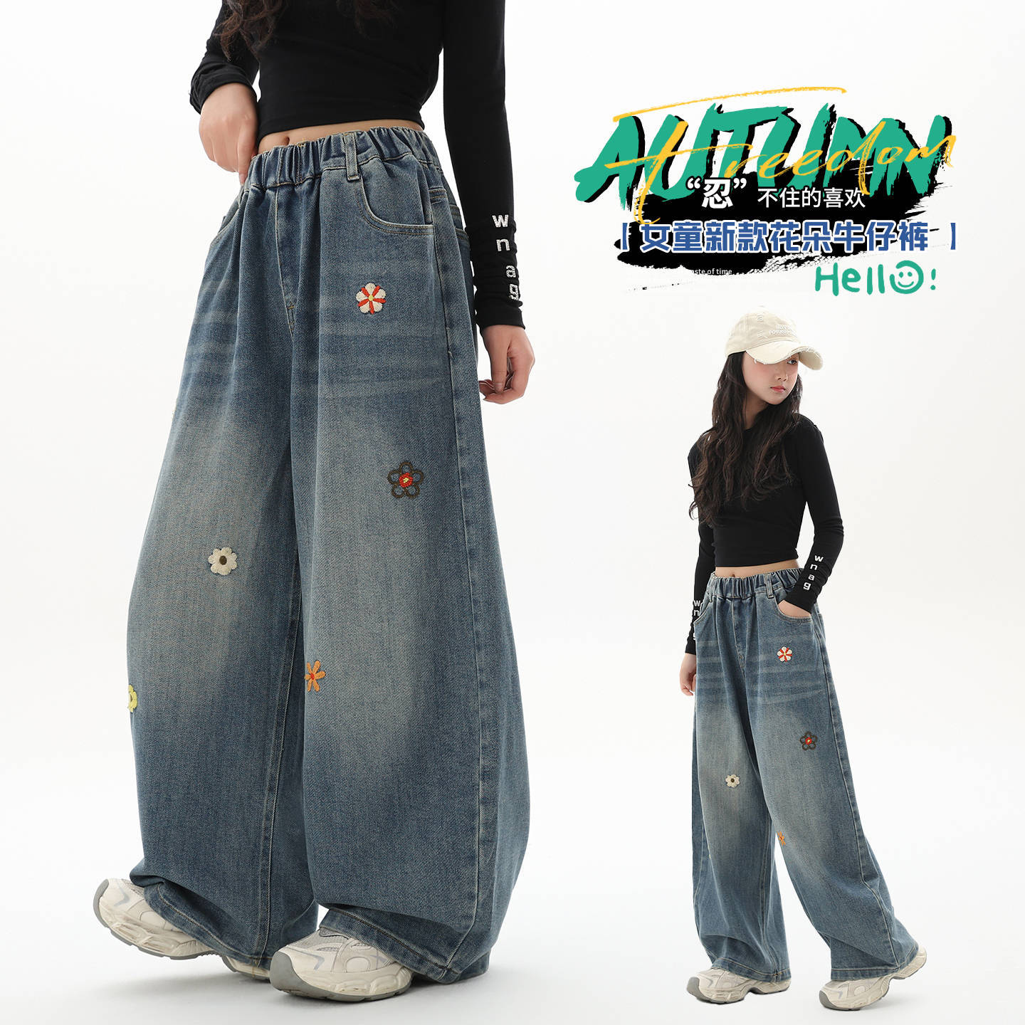 胖女童柔软牛仔裤加肥加大码宽松裤子中大童春秋胖女孩韩版阔腿裤