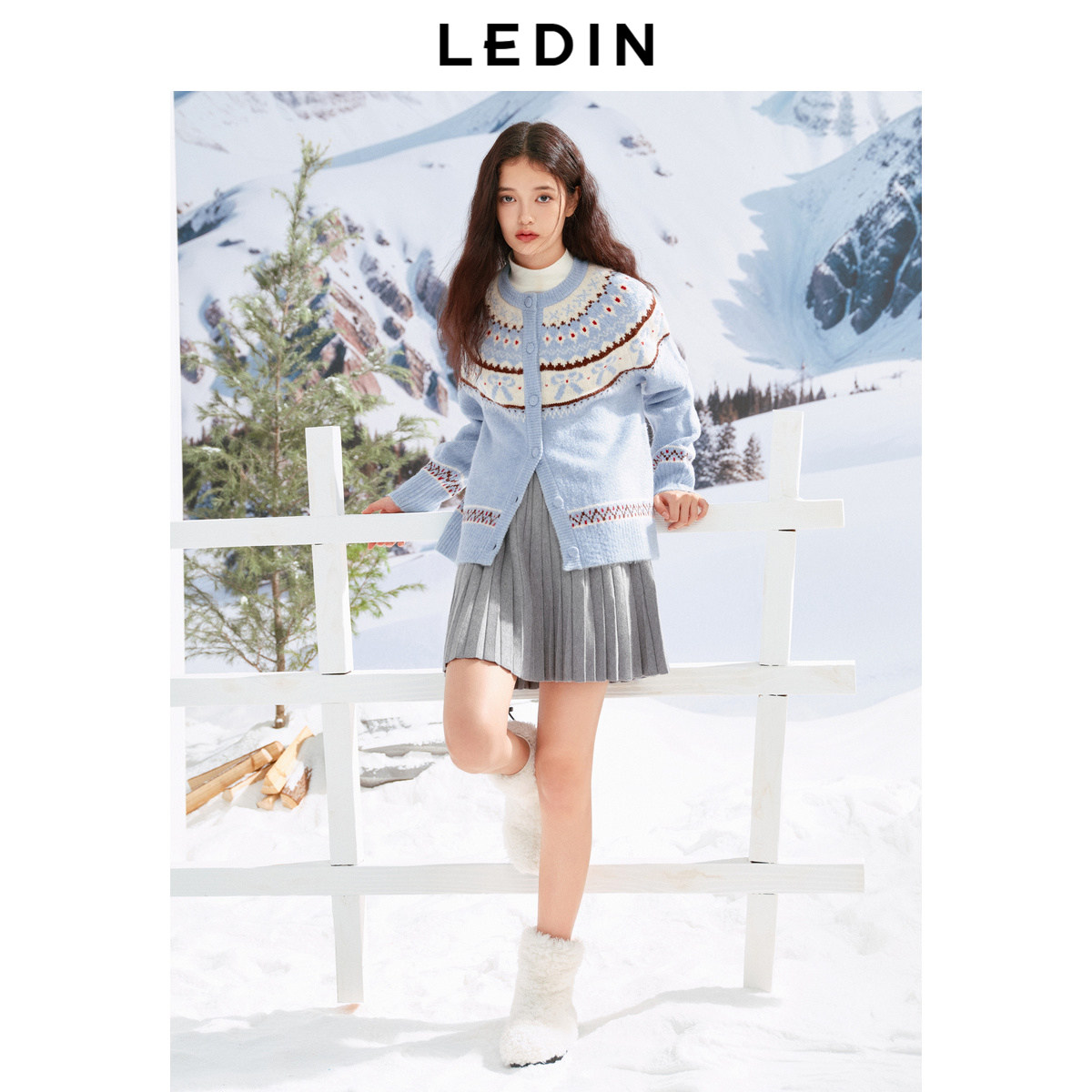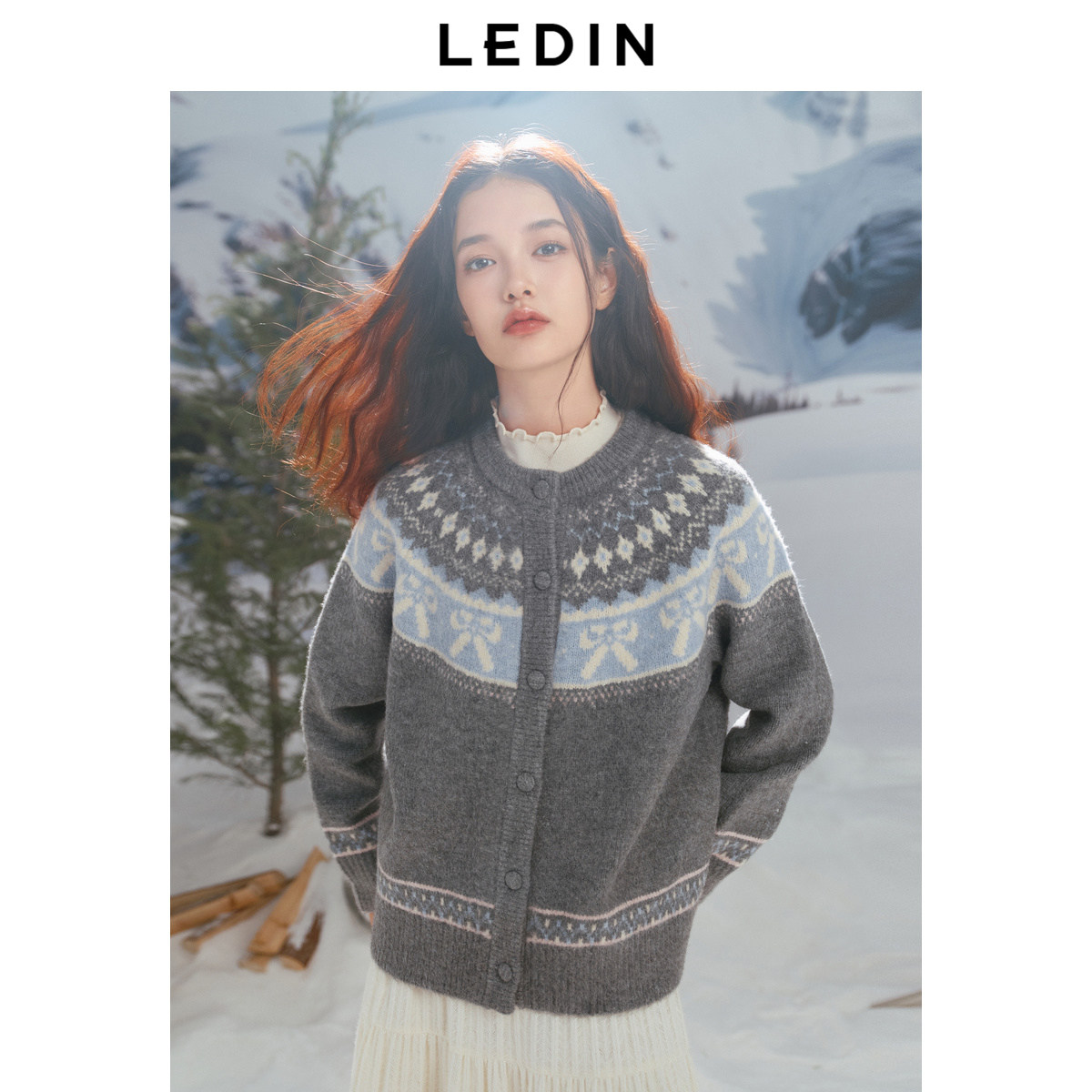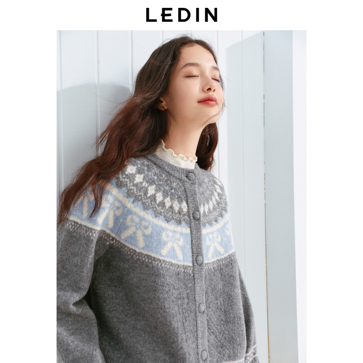 【费尔岛系列】乐町撞色线开衫女装秋冬针织毛衫宽松毛衣外套