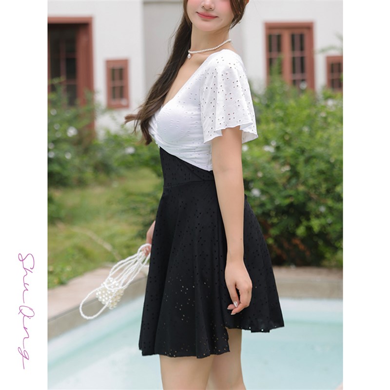 舒晴微胖泳衣女2025高级感镂空撞色裙式遮肉显瘦大码胖mm度假泳装