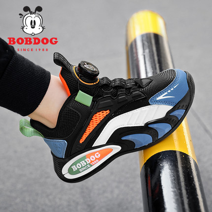 巴布豆儿童运动鞋春秋季网面透气2026新中大童皮面防臭男童跑步鞋