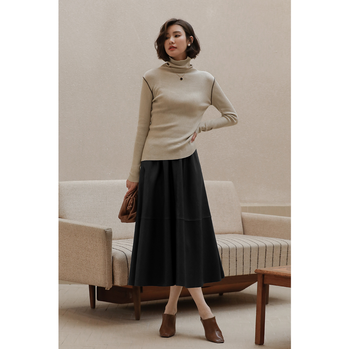 弥古赫本风黑色皮裙半身裙美拉德秋冬裙子女高级感小个子复古半裙