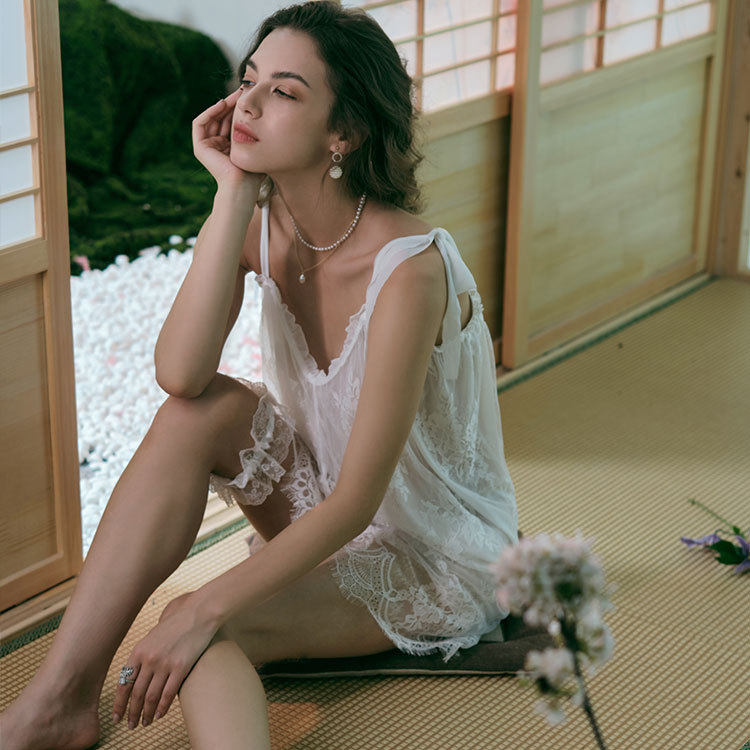 性感睡衣大码200斤透明纯欲白色蕾丝情绪内衣宽松胖妹妹吊带睡裙