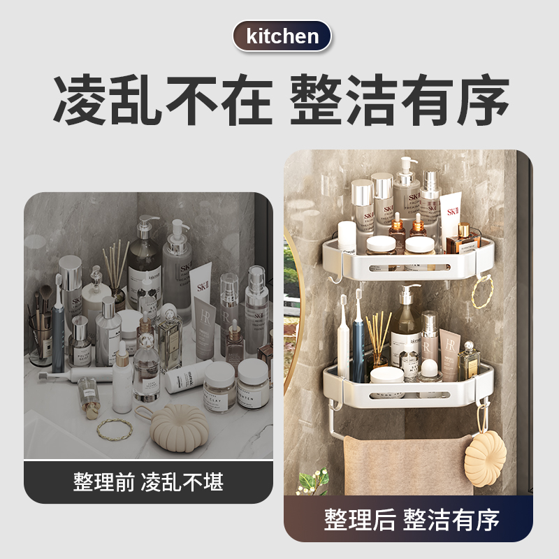 卫生间置物架三角浴室免打孔厕所转角挂架壁挂式收纳架厨房多功能